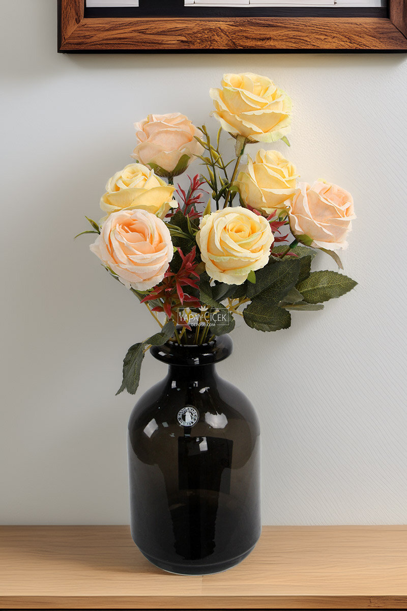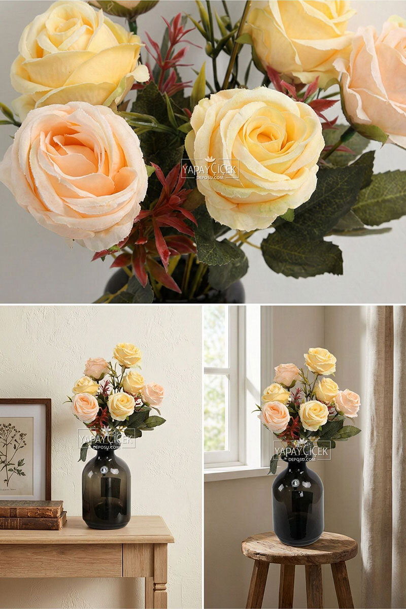 Yapay 7li iri kafa küçük demet gül kaliteli kalın kumaştan üretilmiştir. Çok uzun yıllar asla bozulma ve dağılma olmaz. Yapay 7li iri kafa küçük demet gül isminden de anlaşıldığı üzere 7 daldan oluşmaktadır. Bu Dalların her birinde çapı 5 cm olan iri kaliteli güller ve yaprak dallar bulunmaktadır. Her amaca uygun olarak kullanılabilir ve istediğiniz her türlü tanzimi yapmak için malzeme olarak kullanabilirsiniz. Dekorasyon amaçlı kullanım için biçilmiş bir kaftandır. Gül demetini istediğiniz şekilde ayırıp bölüp parça parça da kullanabilirsiniz. Ürün yapay olduğundan çok uzun ömürlüdür. Asla bozulma söz konusu olmaz.