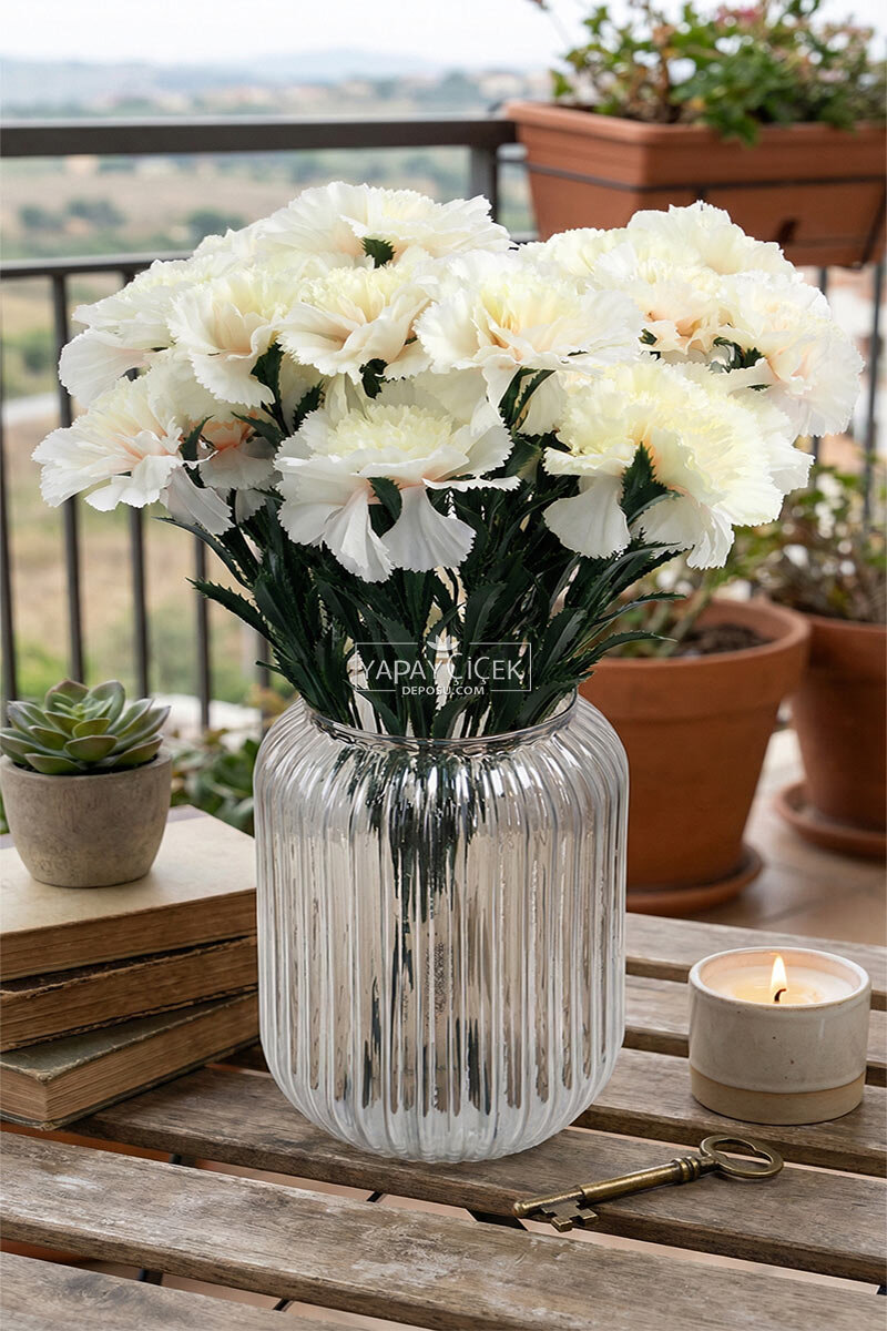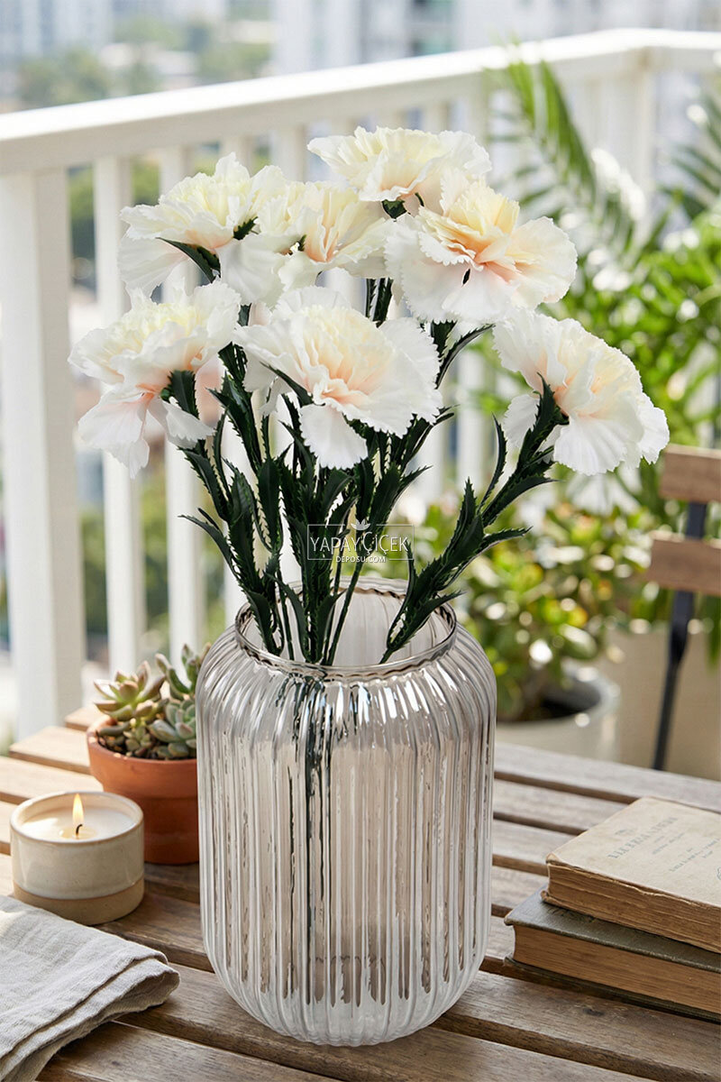 Yapay Çiçek 7li Karanfil Çiçeği Demeti 40 cm Krem