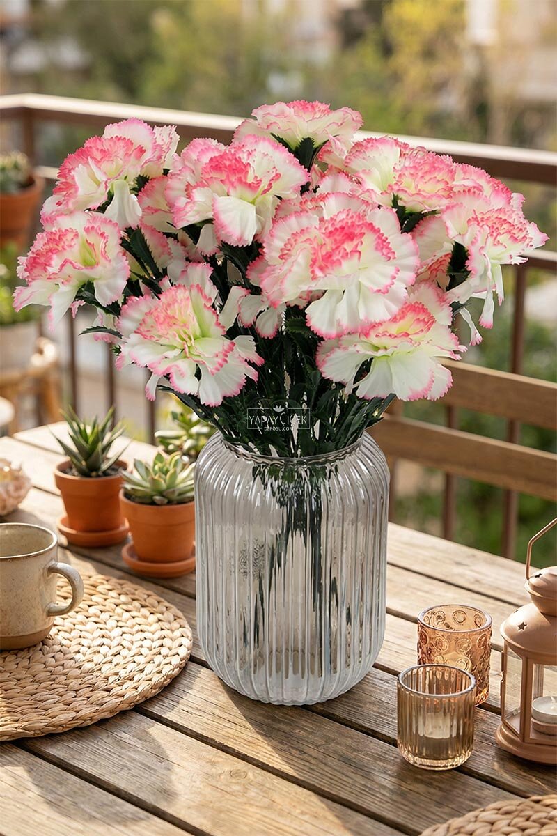 Yapay Çiçek 7li Karanfil Çiçeği Demeti 40 cm Krem-Fuşya