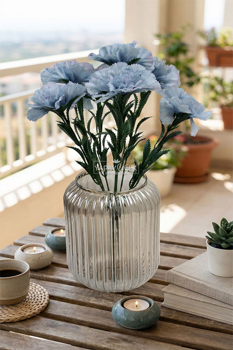 Yapay Çiçek 7li Karanfil Çiçeği Demeti 40 cm Pastel Mavi
