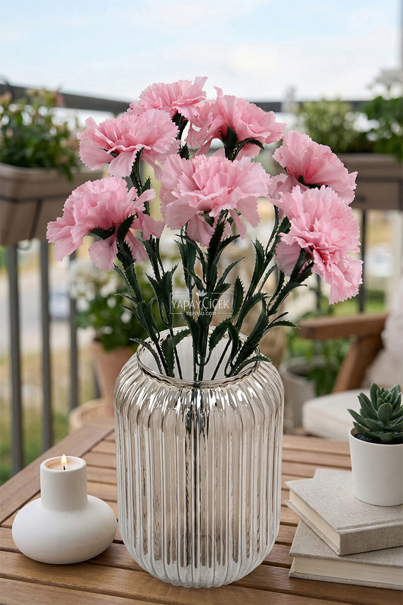 Yapay Çiçek 7li Karanfil Çiçeği Demeti 40 cm Pembe
