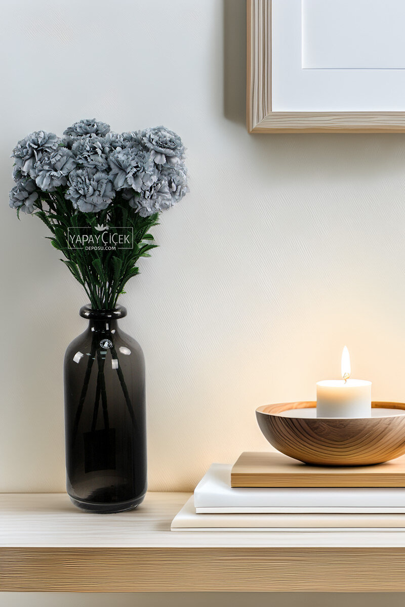 Yapay Çiçek 7li Karanfil Çiçeği Demeti 40 cm Gri