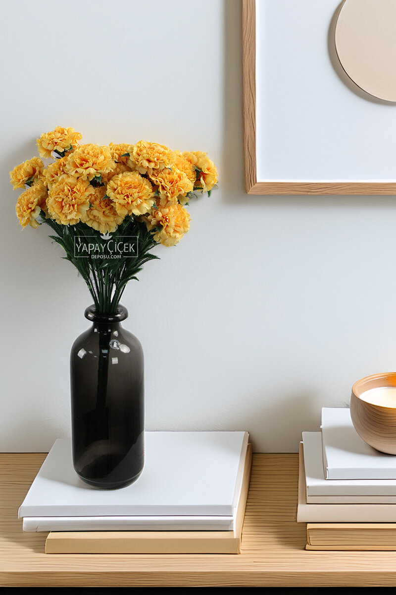Yapay Çiçek 7li Karanfil Çiçeği Demeti 40 cm Sarı