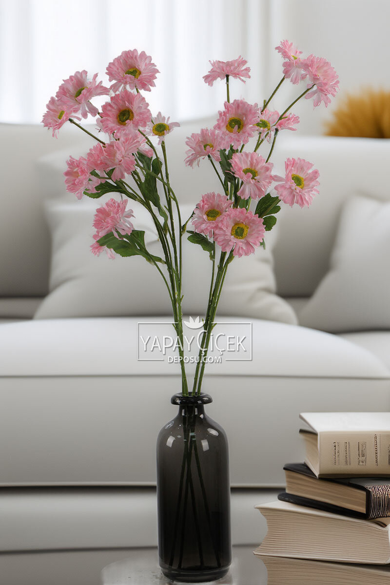 Yapay Çiçek 6 Çiçekli Fransız Gerberası Dalı 75 cm Açık Pembe