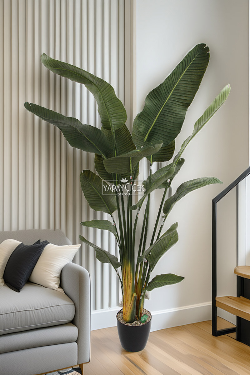 Yapay Starliçe ağacı, ev veya ofis dekorasyonunda tropikal ve doğal bir dokunuş arayanlar için mükemmel bir seçimdir. 190 cm yüksekliğinde olan bu yapay ağaç, 16 büyük ve gerçek dokunuş hissi veren yeşil yaprağı ile dikkat çeker. Starliçe'nin büyük yaprakları, her mekâna canlılık ve ferahlık katarak göz alıcı bir atmosfer oluşturur. Üstelik, bakım gerektirmeyen bu bitki, sürekli taze ve bakımlı görünerek zamandan tasarruf etmenizi sağlar. Doğal ışık ve su istemeyen yapısı ile her daim yeşil ve canlı kalan bu yapay Starliçe ağacı, dekorasyonunuza zarif ve modern bir dokunuş katar. Misafirlerinizin hayran kalacağı bu şık bitki ile mekânınıza uzun ömürlü ve zahmetsiz bir güzellik getirebilirsiniz.