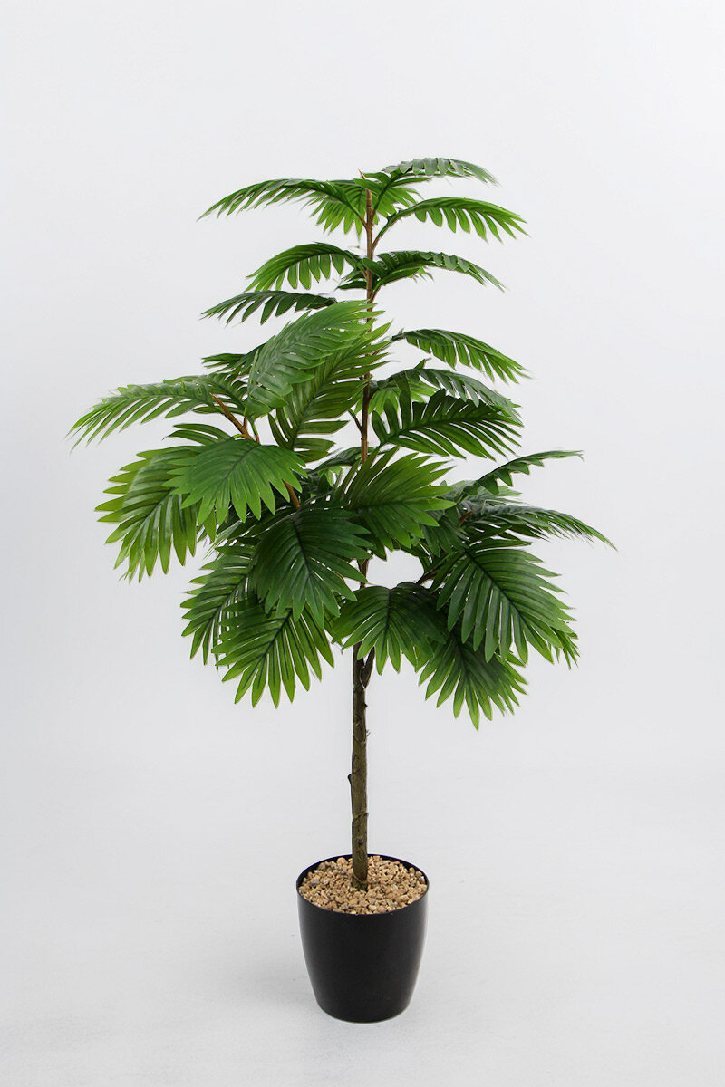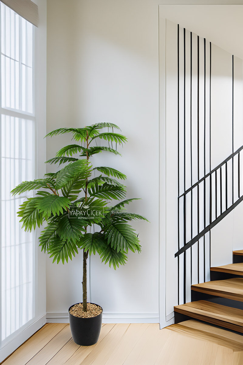 Yapay Ağaç Areka Palmiyesi 130 cm, ince ve uzun yaprak formuyla tropikal bitkilerin ferah ve zarif görünümünü yaşam alanlarınıza taşıyan dekoratif bir ağaçtır. Dolgun yaprak yapısı sayesinde bulunduğu alanda hacimli ve dengeli bir duruş sergiler.