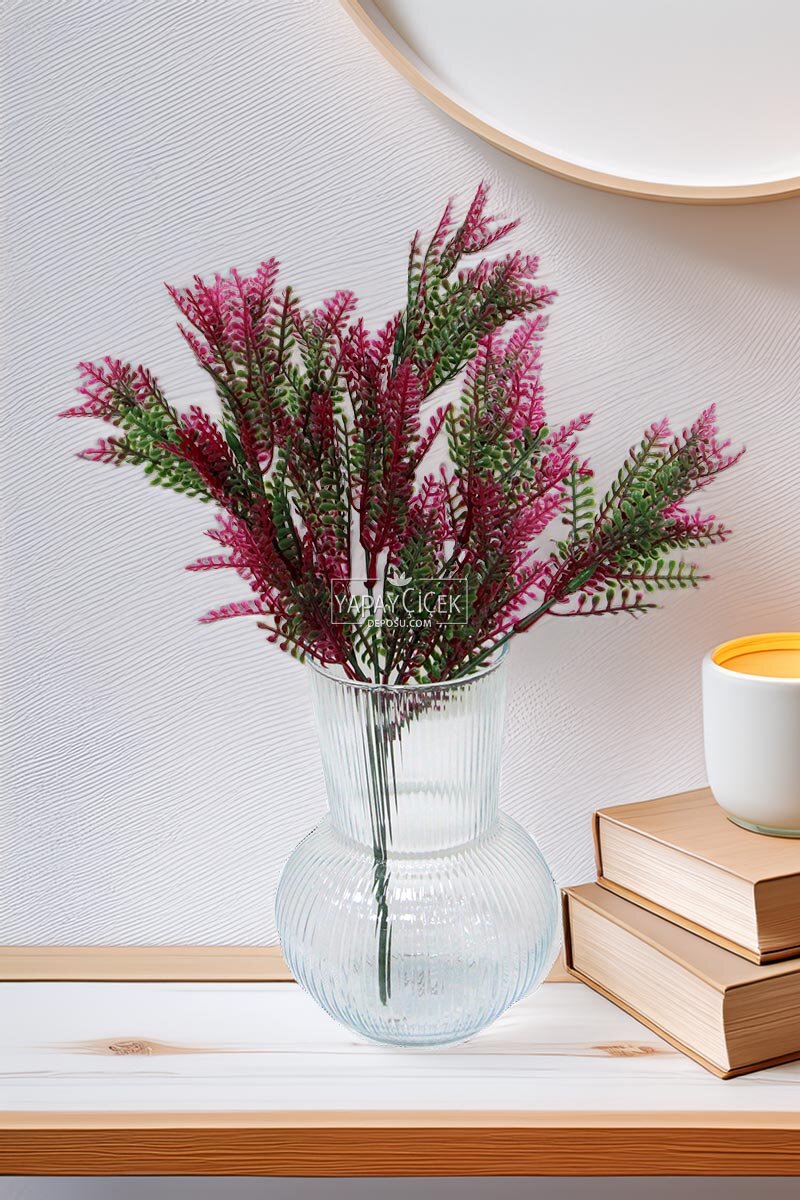 Yapay Asparagus Demeti 35 cm, yeşil ve fuşya tonlarının uyumuyla öne çıkan, dekorasyonlara canlılık ve modern bir hava katan özel bir bitki tasarımıdır. İnce ve yumuşak dokulu yaprakları sayesinde hafif, havalı ve doğal bir görünüm sunar.