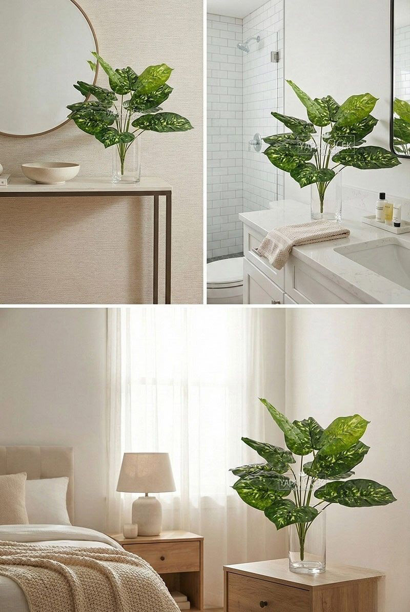 Yapay Bitki 12 Yapraklı Lumina 47 cm, doğal yaprak formu ve dengeli duruşu sayesinde bulunduğu ortama ferah ve şık bir görünüm kazandırır. 12 yapraklı yapısı, bitkiye dolgunluk katarken sade ve modern bir estetik sunar.