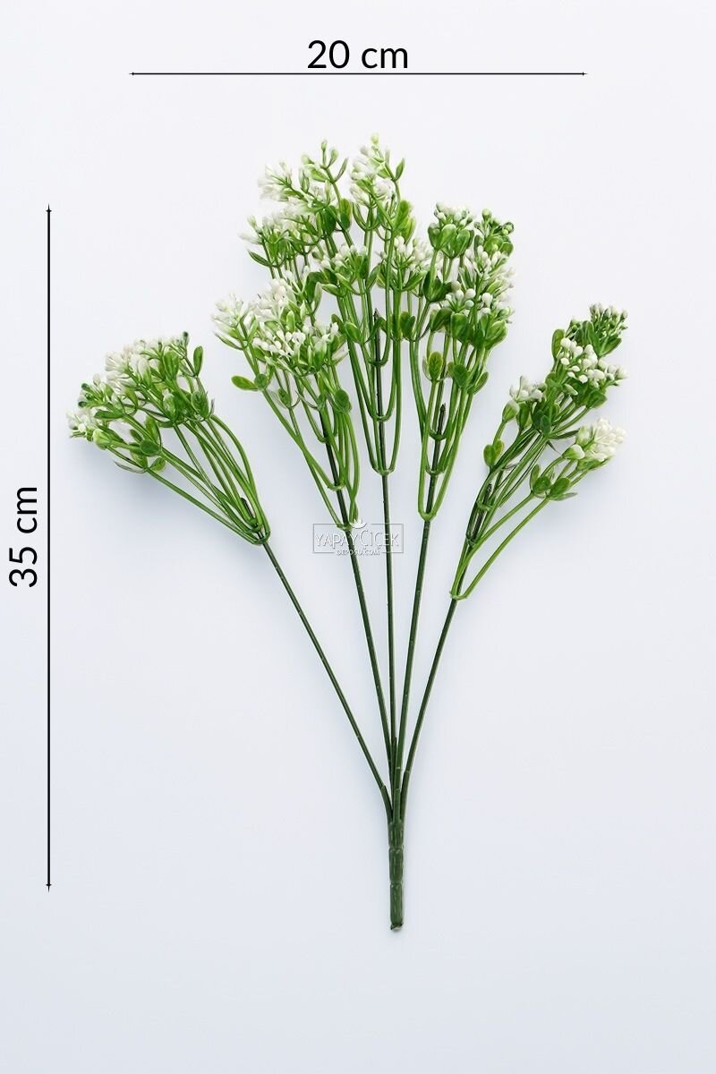 Yapay Bitki 5 Dallı Yaban İncisi Bitki Demeti 35 cm, zarif dal yapısı ve dengeli formu ile dekorasyonlara sade ve şık bir görünüm kazandırır. 5 dallı yapısı sayesinde demet kompakt olmasına rağmen dolgun bir duruş sergiler ve bulunduğu alanda düzenli bir eti öne çıkarır.