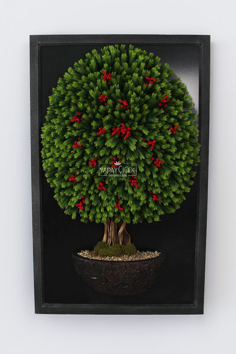 106x170 cm ölçüsü ile geniş salonlar, oturma odaları, ofis lobileri, restoranlar ve modern yaşam alanlarında duvar dekorasyonunda çarpıcı bir etki yaratır. Her bir bonsai dalı ince detaylarla tasarlanmış olup gerçeğe yakın dokusu sayesinde doğal bir görünüm sunar.