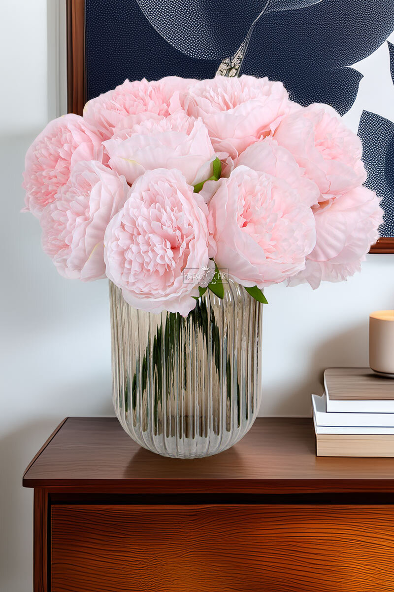 Yapay ÇiçeklerYapay Çiçek Açmış Şakayık Gül Buketi Pudra Pembe Özellikleri;