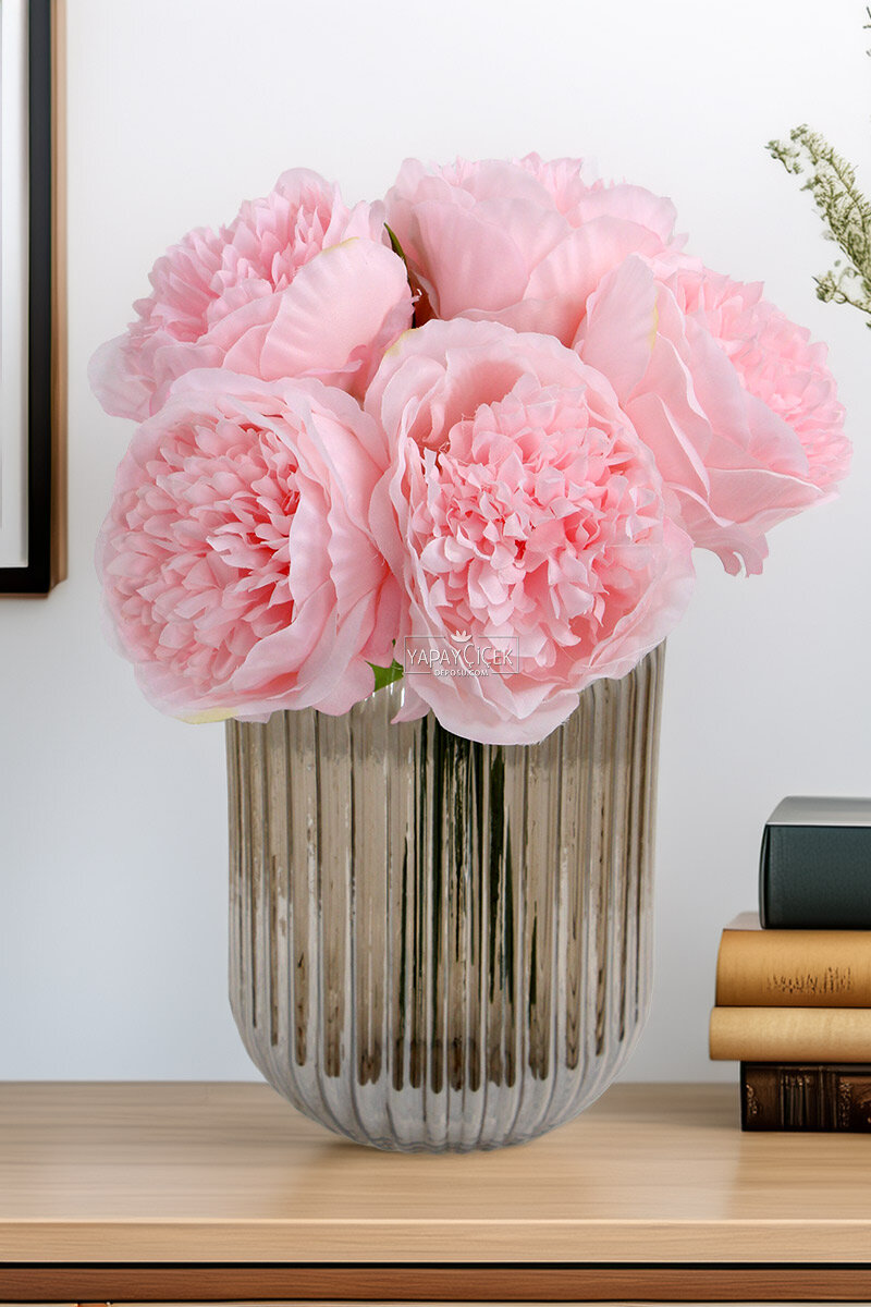 Yapay Çiçek Açmış Şakayık Gül Buketi Pudra Pembe Fiyatları;