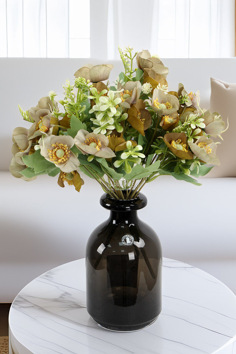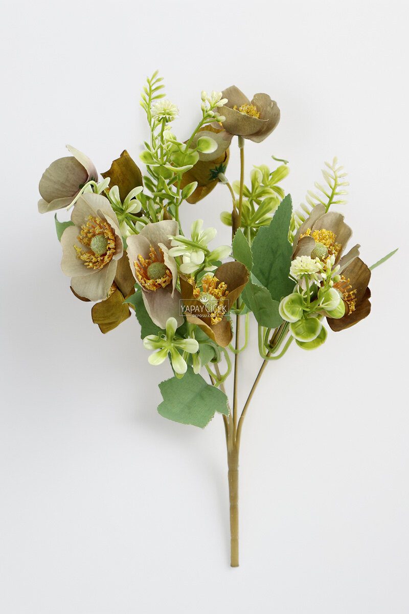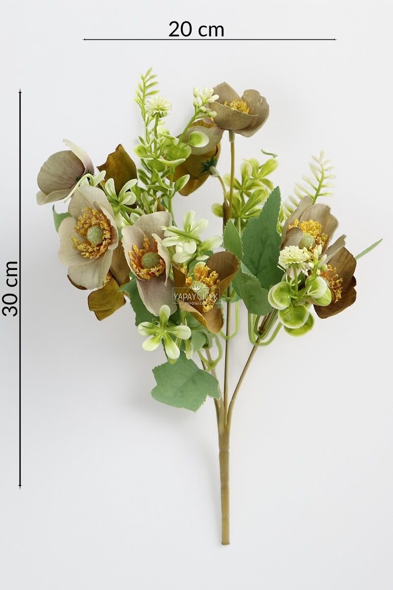Yapay Çiçek 10 Çiçekli Mini Cam Güzeli Demeti 30 cm Kahve-Yeşil