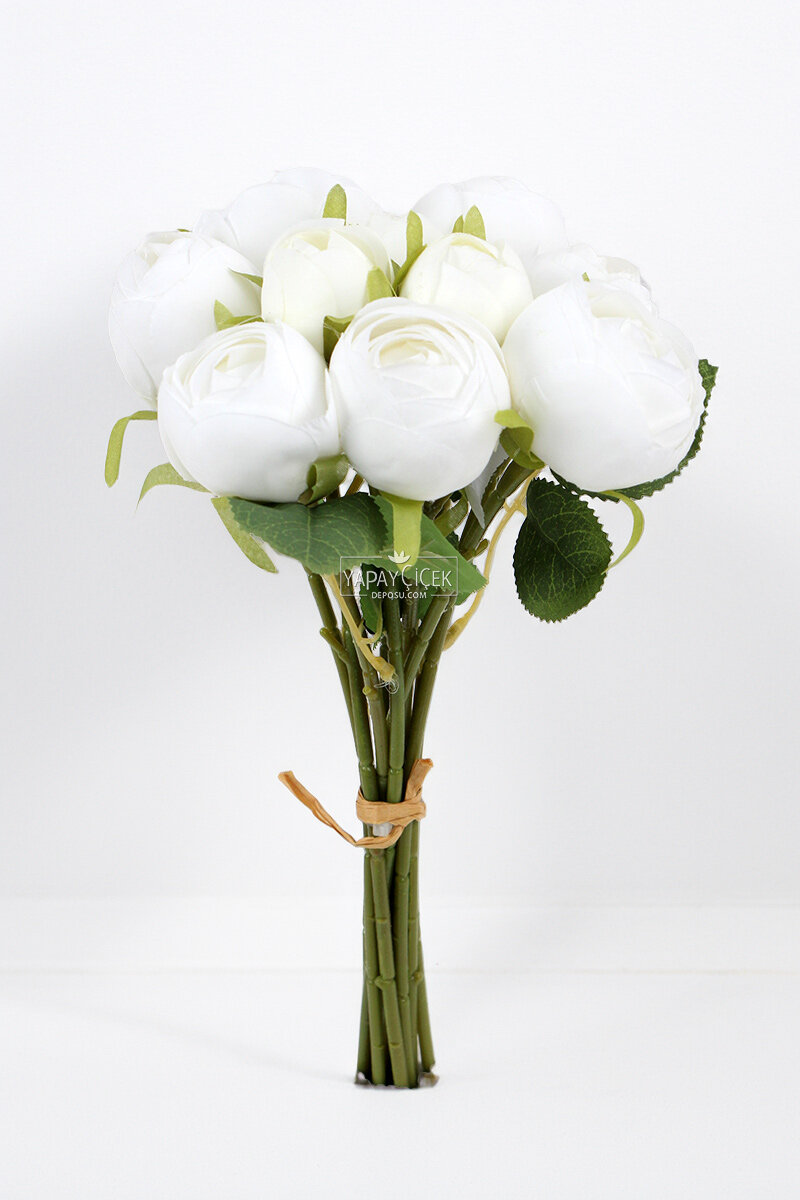 Yapay Çiçek 10'lu Zarif Şakayık Gül Buketi 30 cm Beyaz
