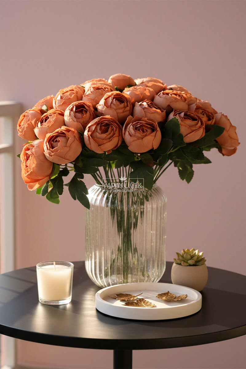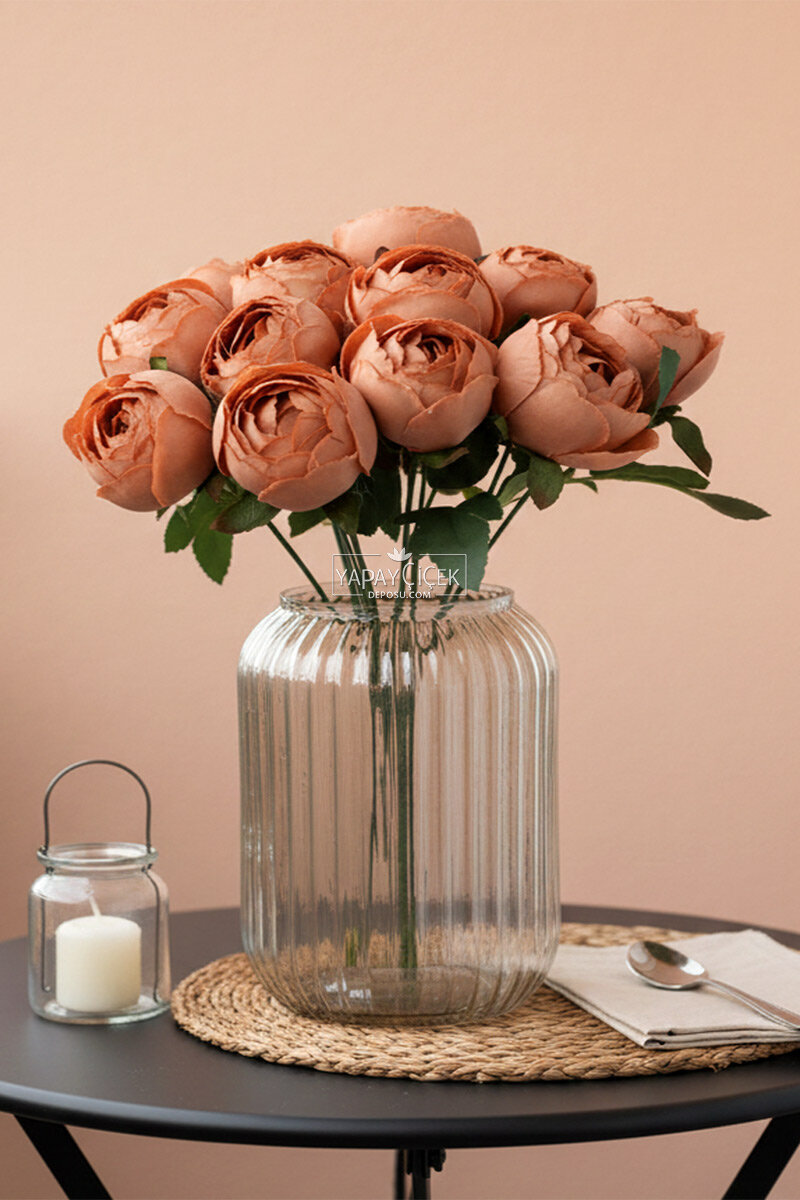 Yapay Çiçek 12li Şakayık Demeti 35 cm Kahverengi