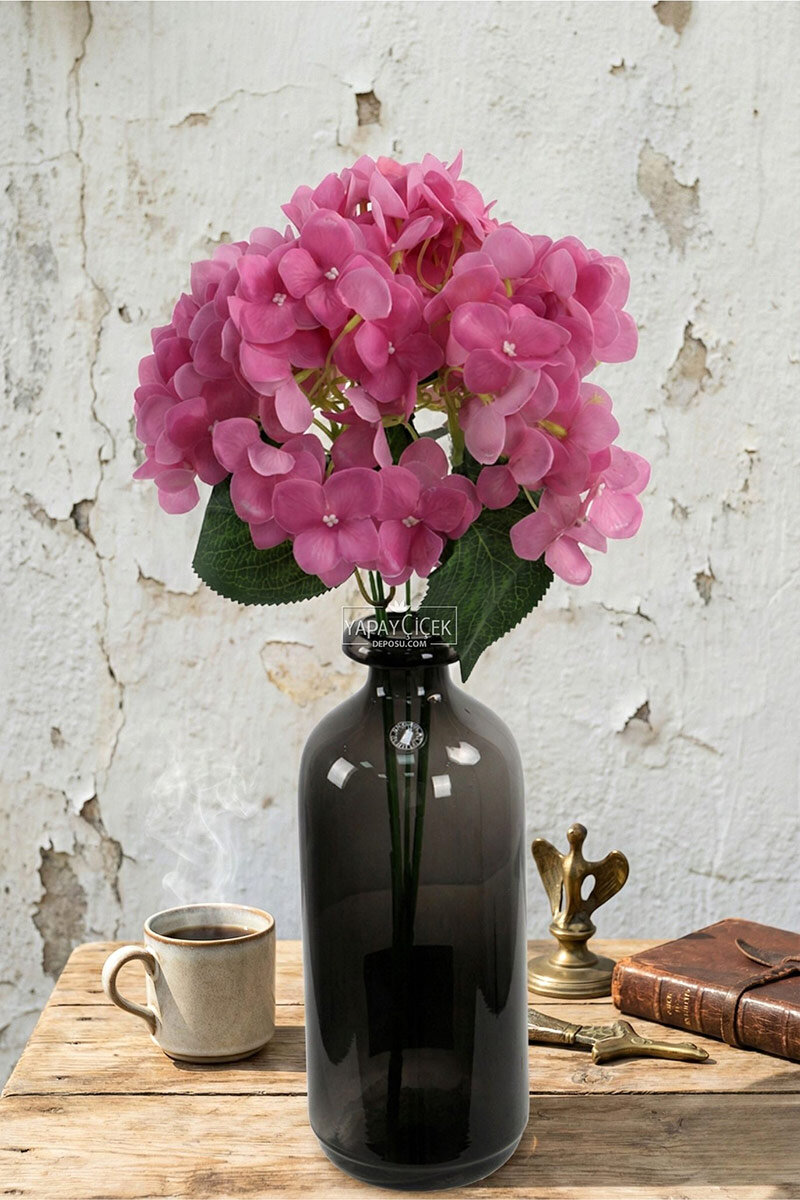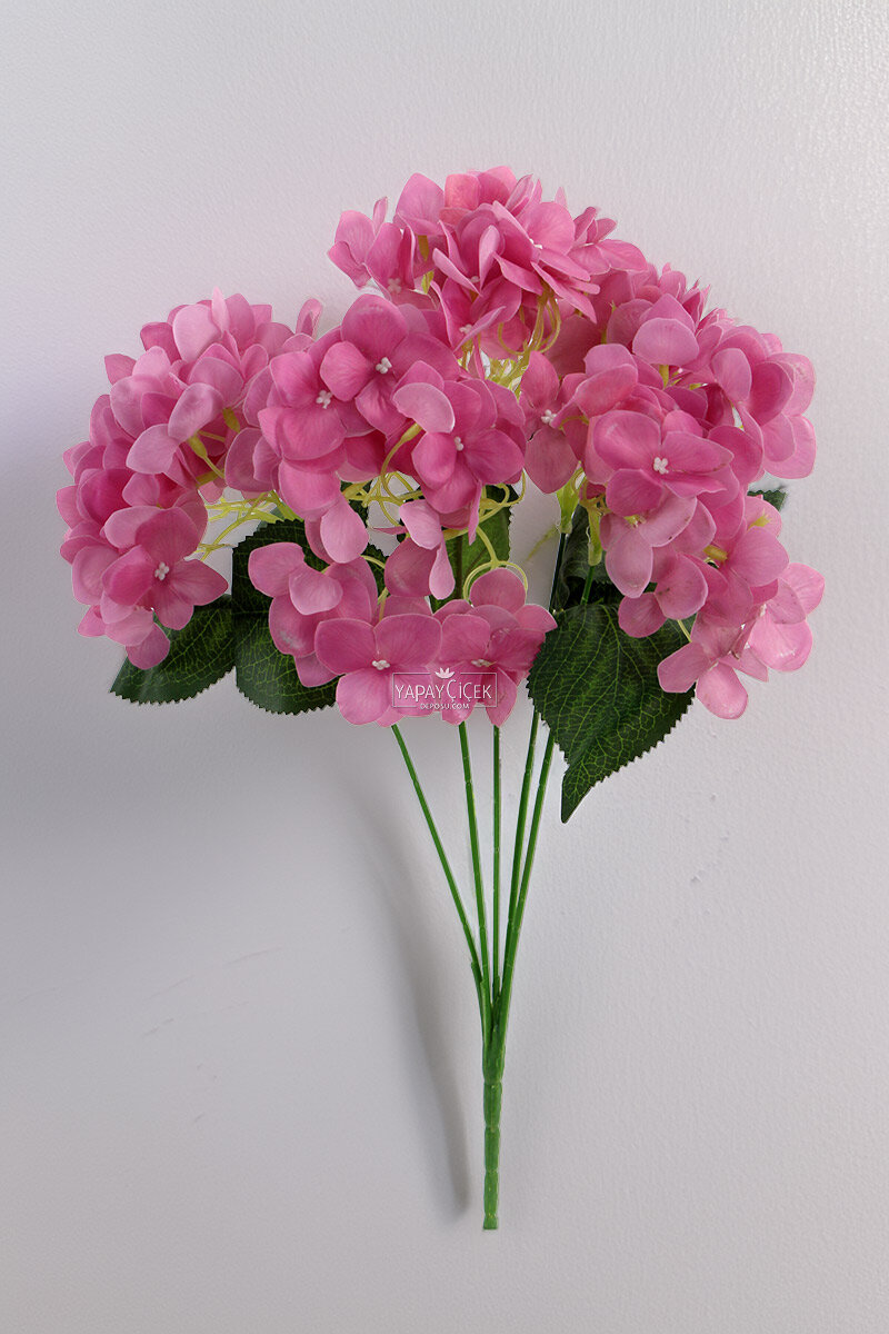 Yapay Çiçek 5 Dal Islak Damarlı Ortanca Demeti 45 cm Fuşya