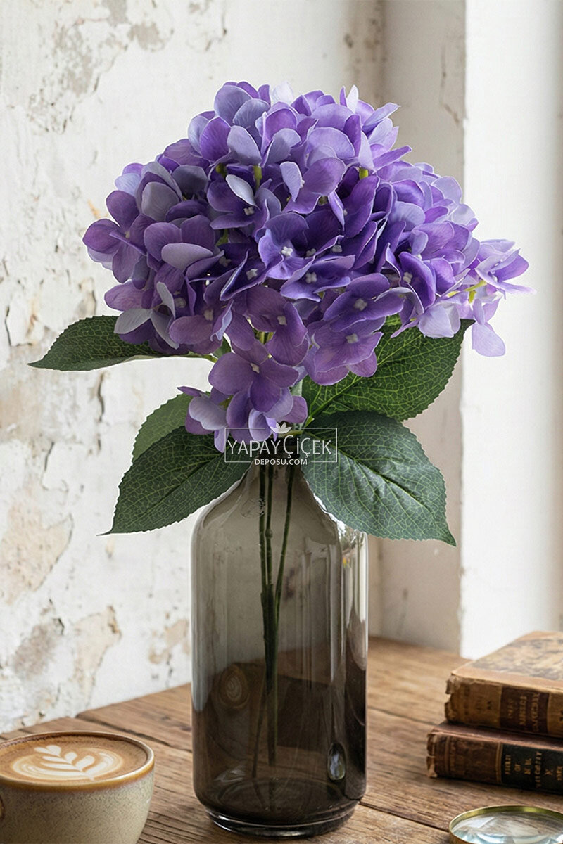 Yapay Çiçek Büyük 5 Dal Islak Damarlı Ortanca Demeti 45 cm