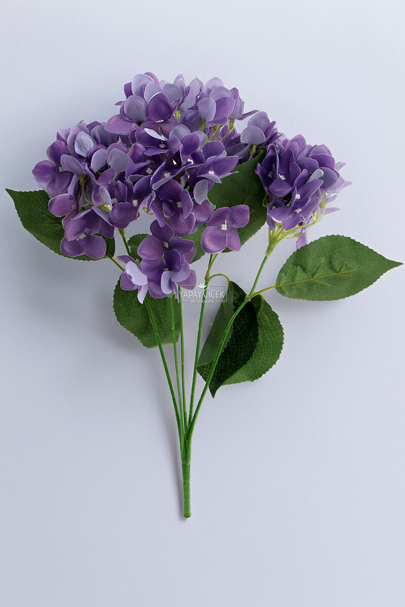 Yapay Çiçek 5 Dal Islak Cornales Damarlı Ortanca Demeti 45 cm Koyu Mor