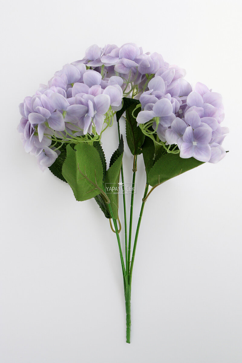 Yapay Çiçek 5 Dal Islak Damarlı Ortanca Demeti 45 cm Lila