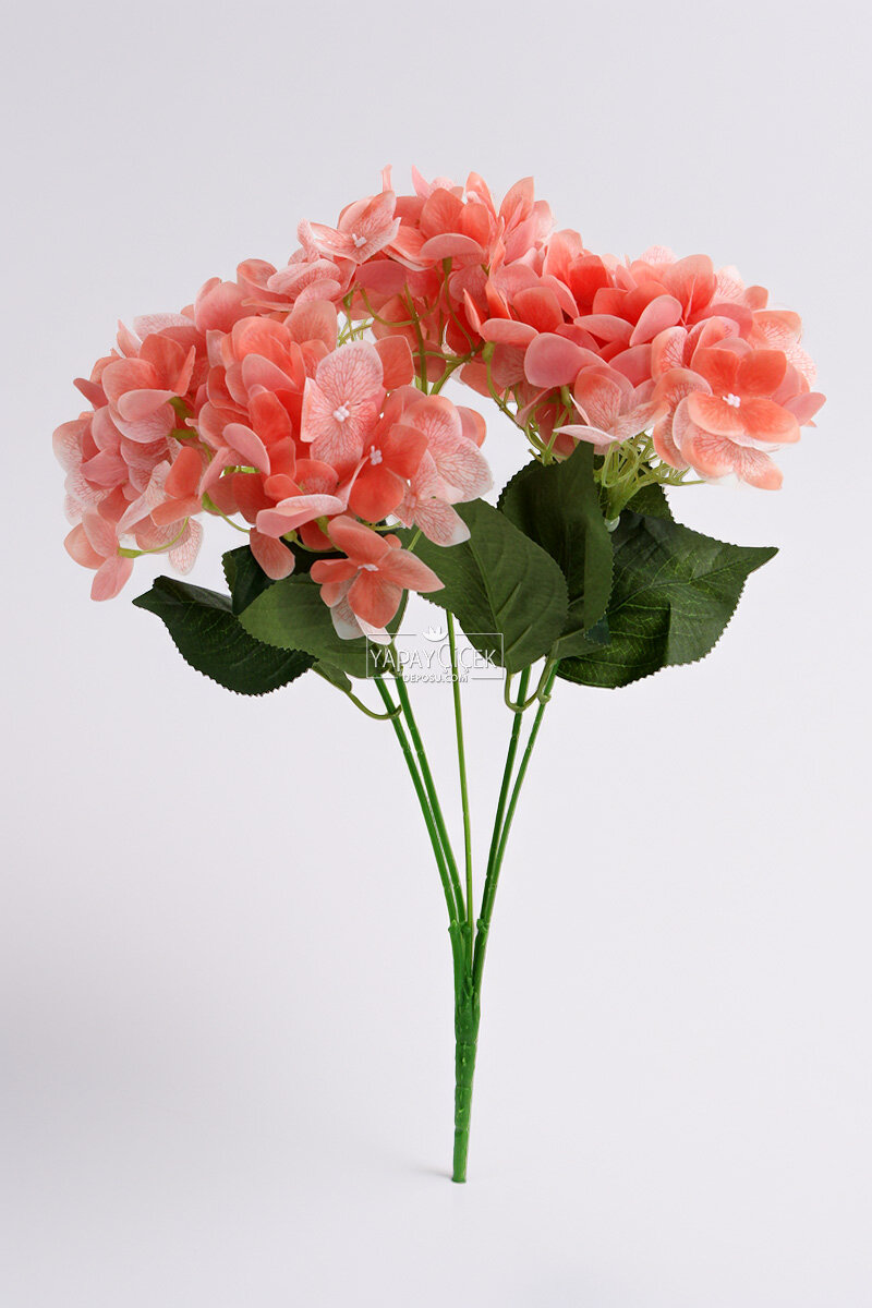 Yapay Çiçek 5 Dal Islak Damarlı Ortanca Demeti 45 cm Somon