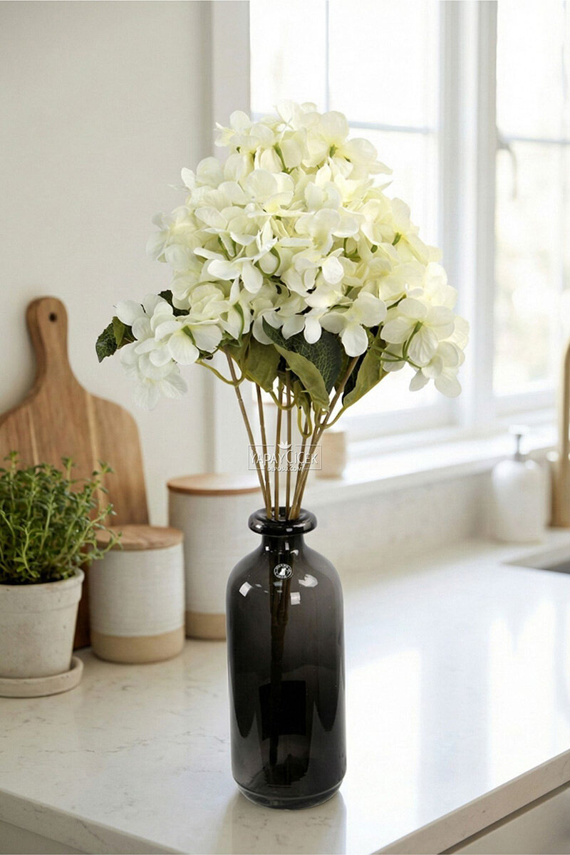 Yapay Çiçek Büyük 5 Dal Ortanca Demeti 55 cm Beyaz