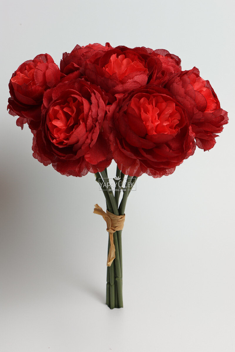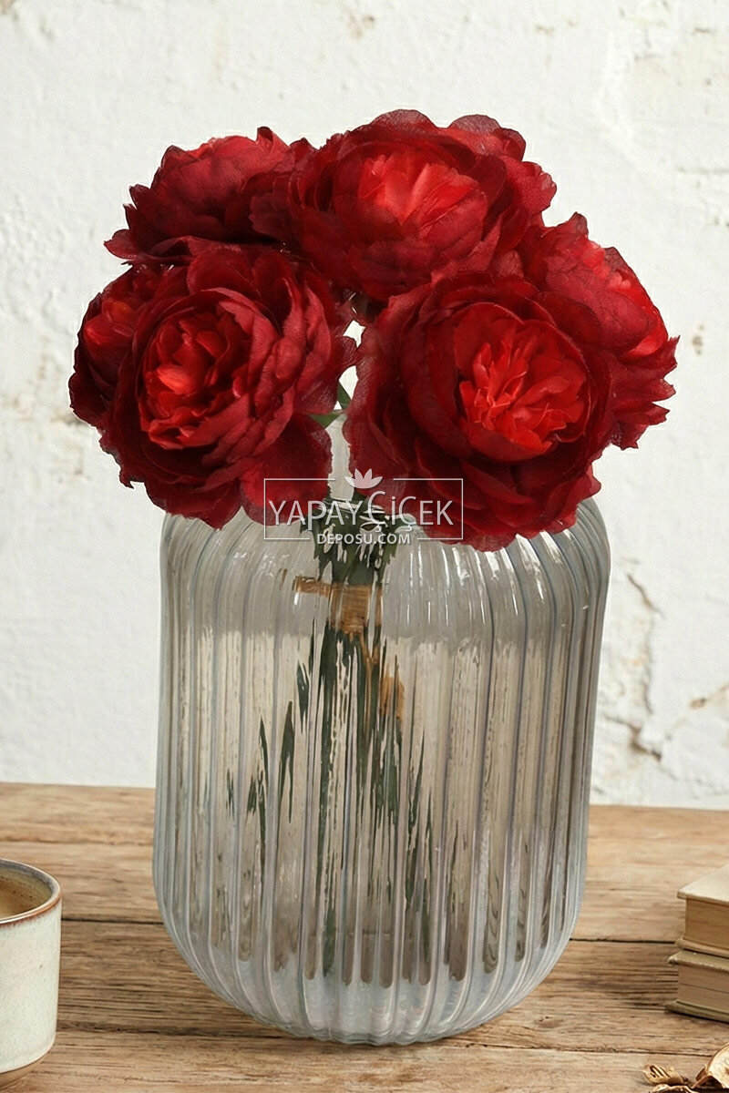 Yapay Çiçek 7li Çay Gülü Demeti 30 cm Bordo