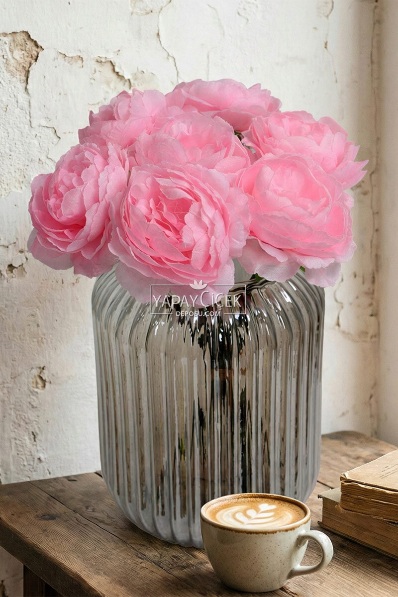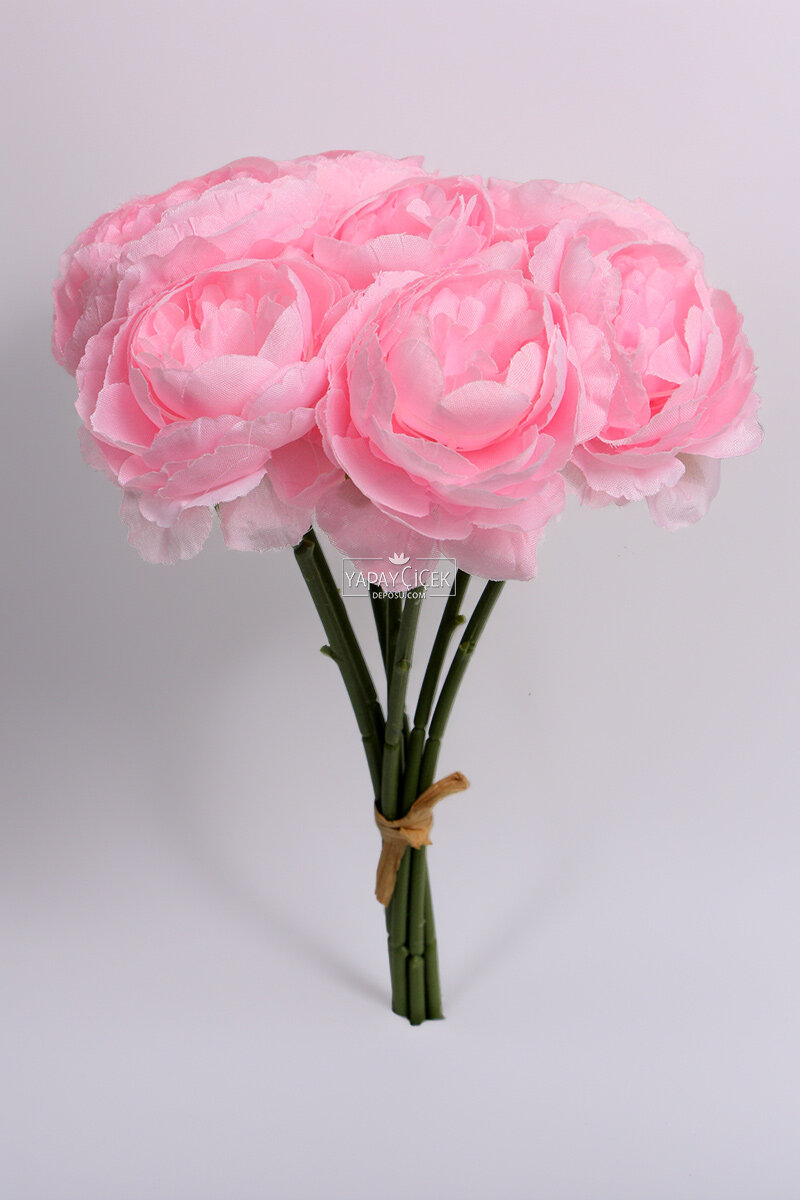 Yapay Çiçek 7li Çay Gülü Demeti 30 cm Canlı Pembe