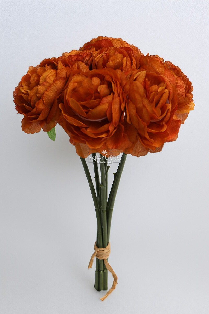 Yapay Çiçek 7li Çay Gülü Demeti 30 cm Kiremit
