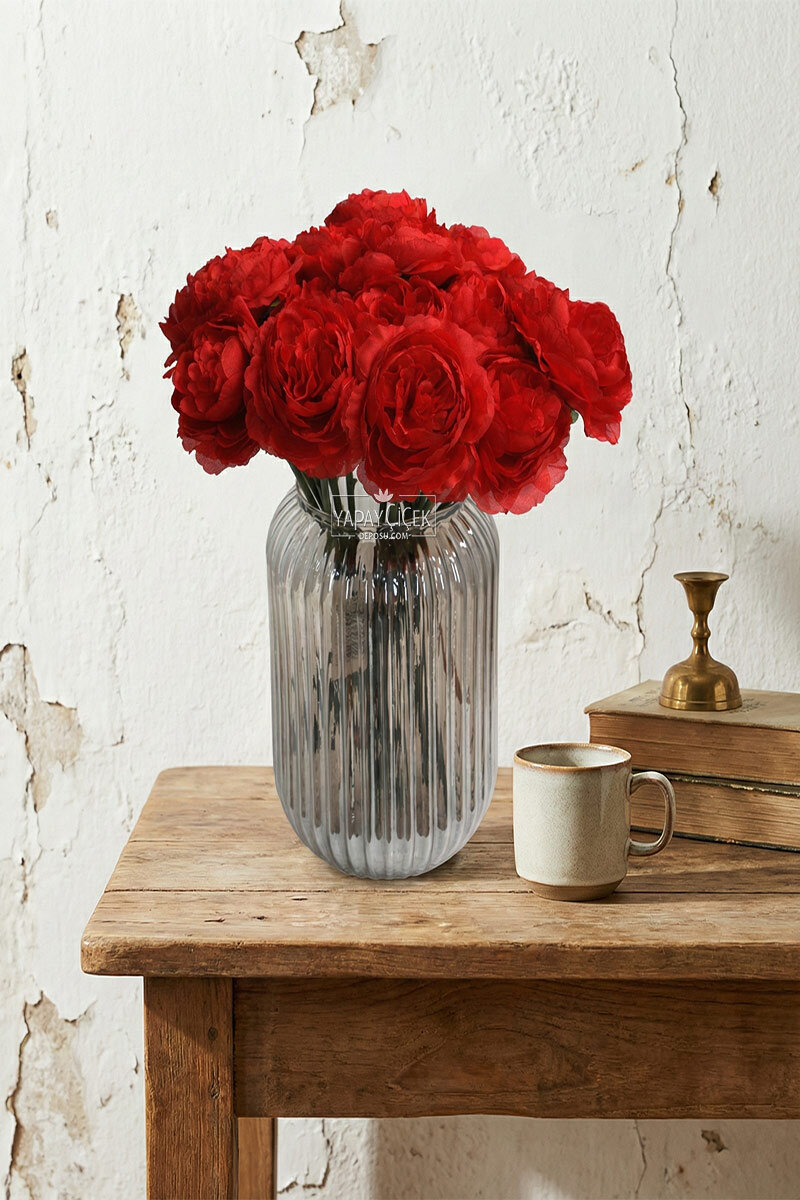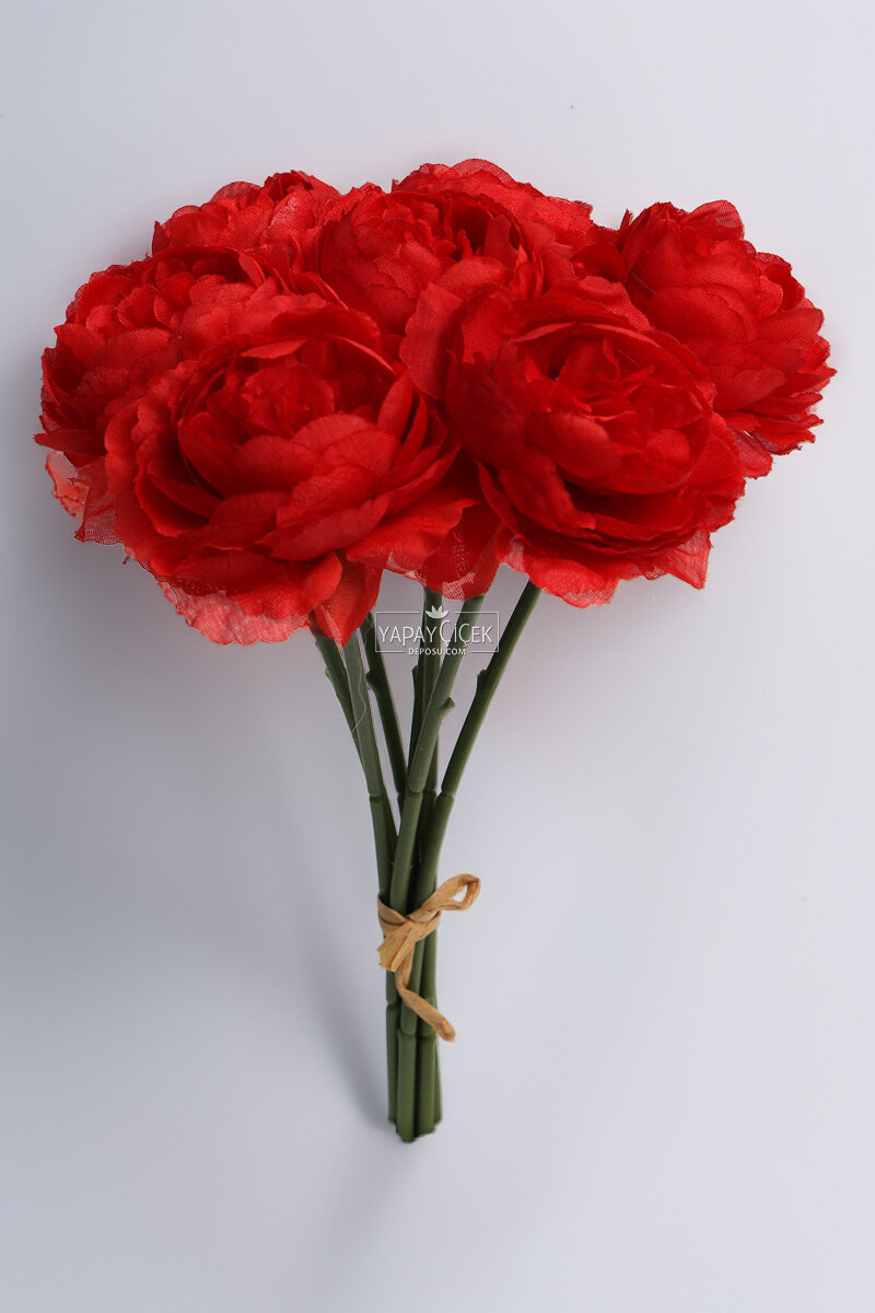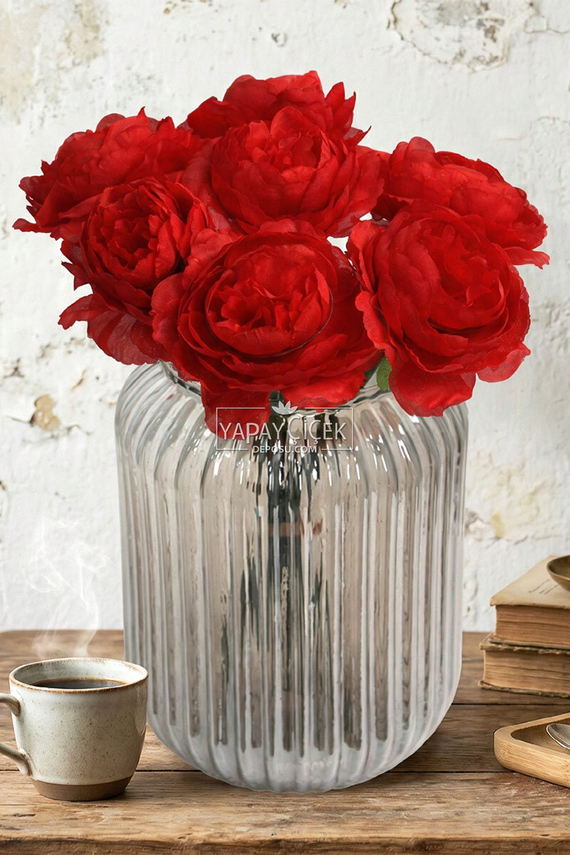 Yapay Çiçek 7li Çay Gülü Demeti 30 cm Kırmızı