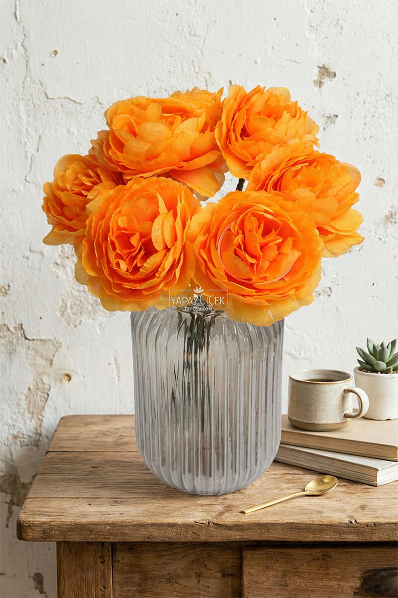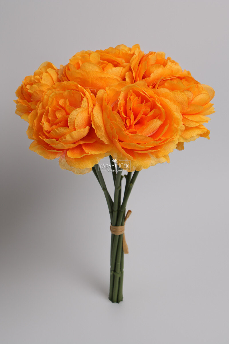 Yapay Çiçek 7li Çay Gülü Demeti 30 cm Turuncu