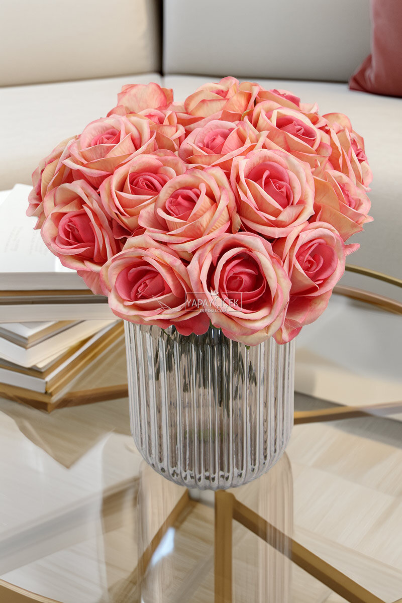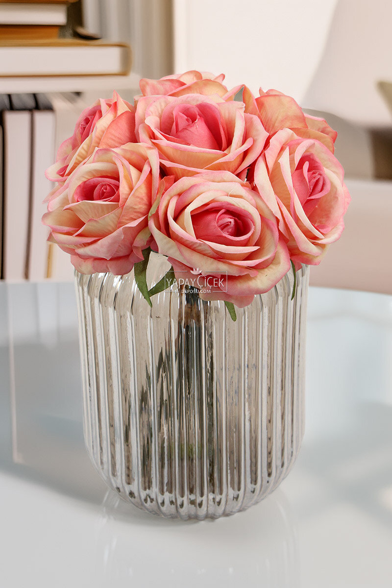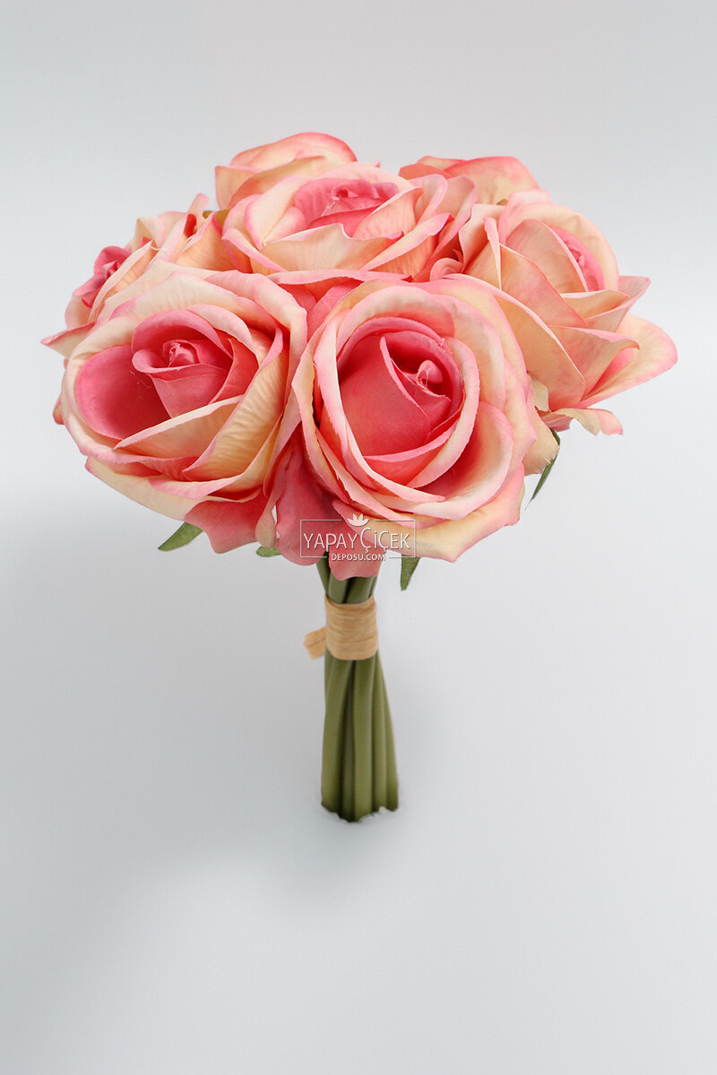 Yapay Çiçek Premium 7'li Engerek Gülü Demeti 25 cm Pembe-Somon