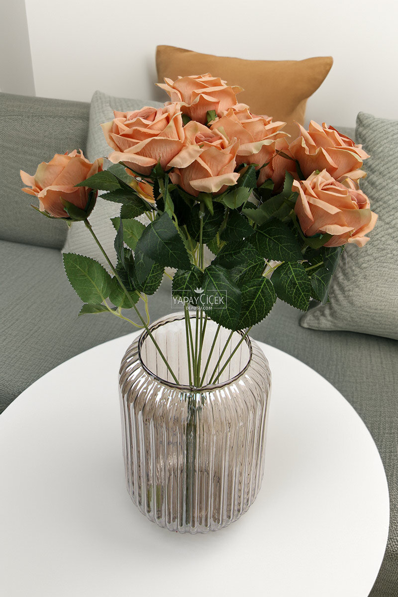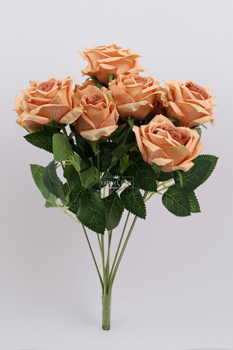 Yapay Çiçek 9'lu Bağdat Gülü Demeti 42 cm Somon