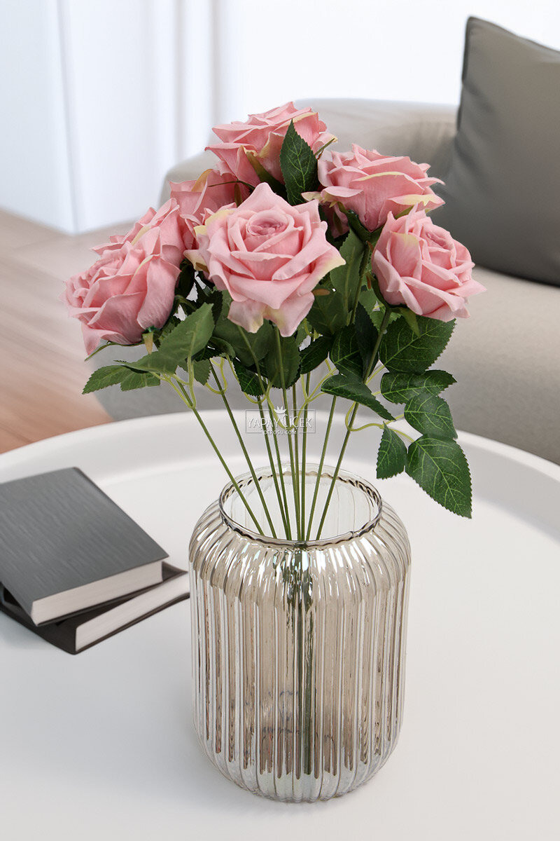 Yapay Çiçek 9'lu Bağdat Gülü Demeti 42 cm Pembe