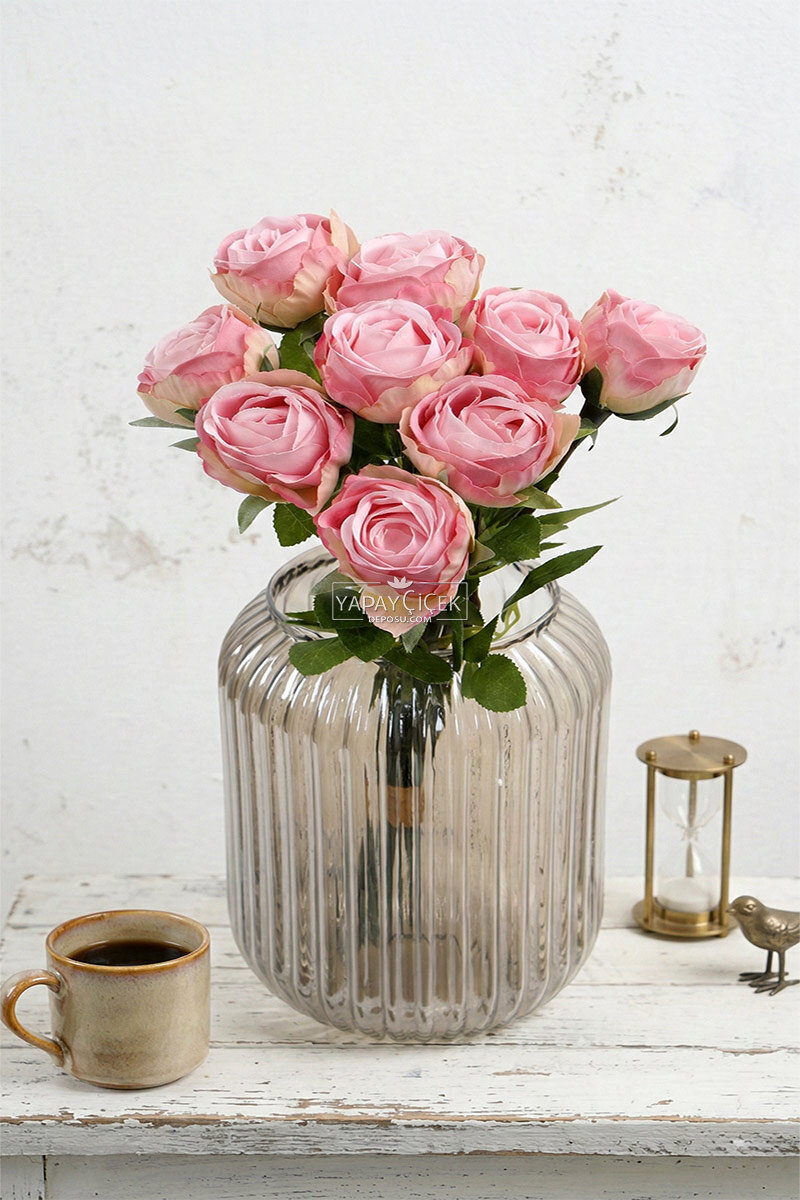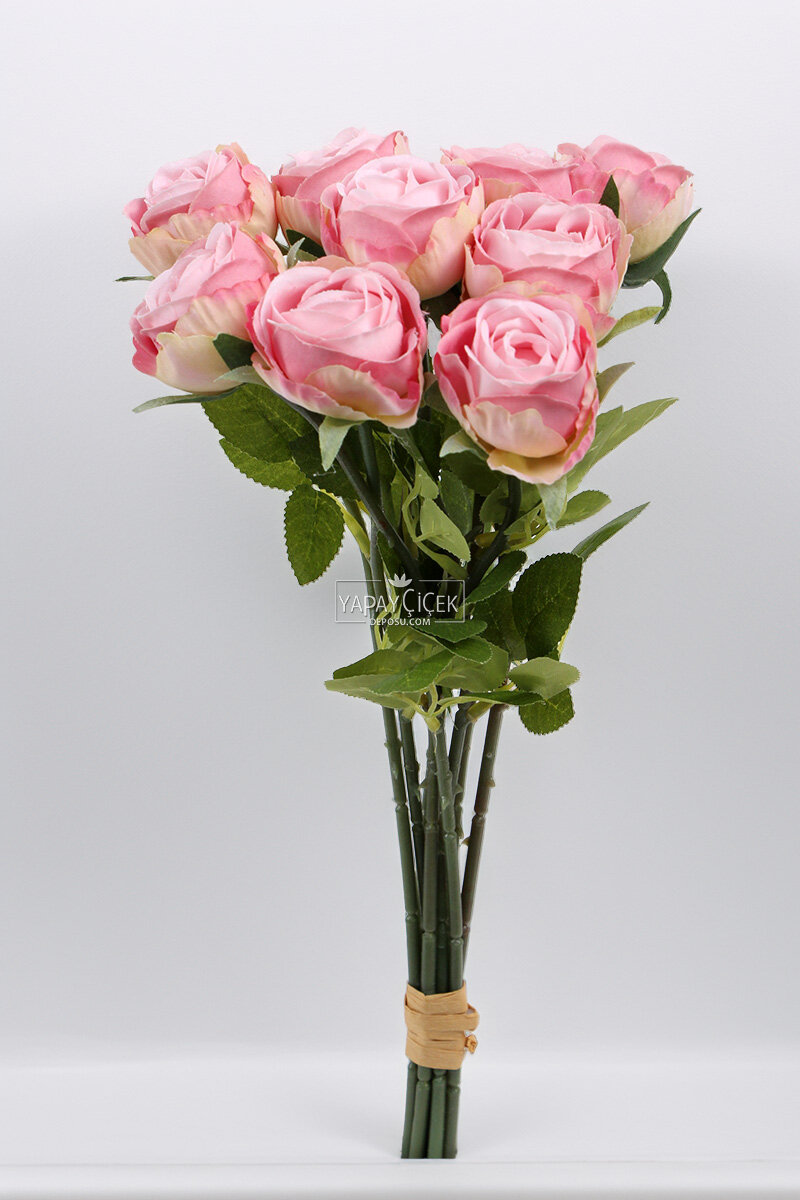 Yapay Çiçek 9'lu Kibar Lüx Gonca Gül Dalı Demeti 35 cm Toz Pembe