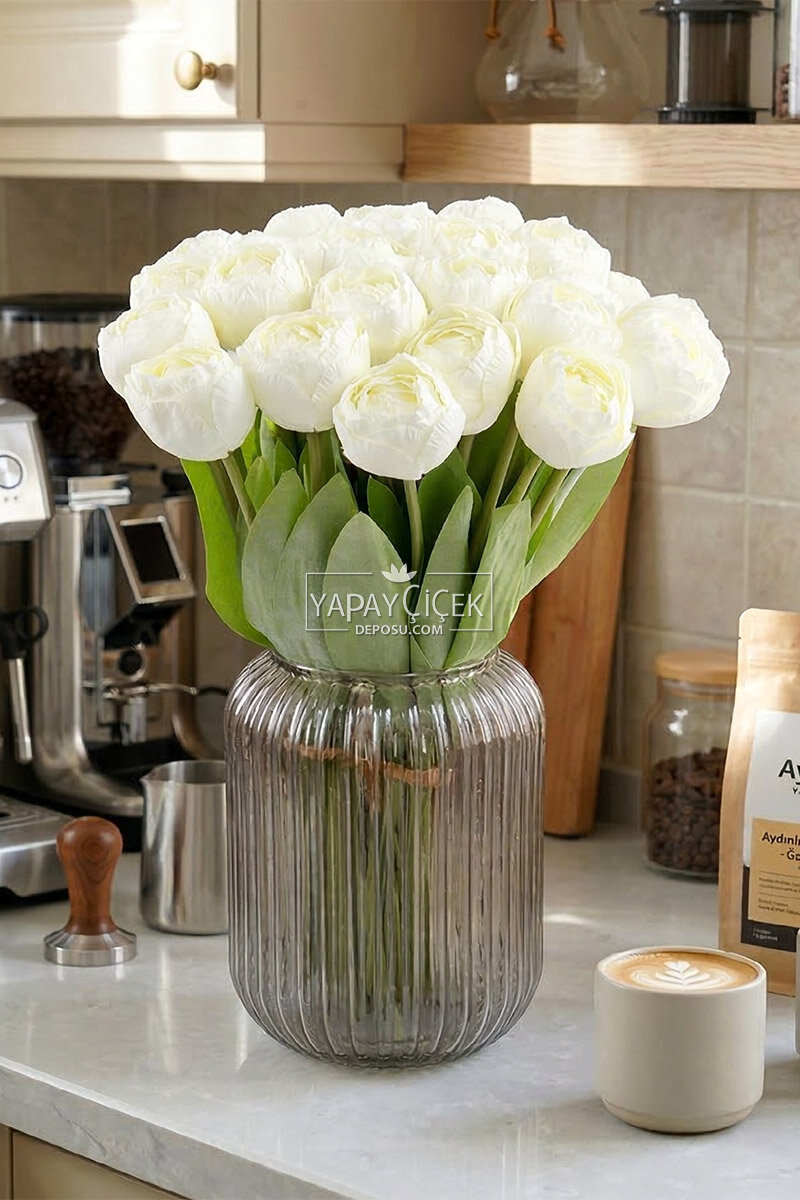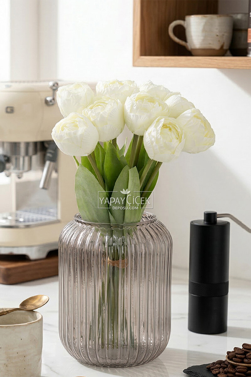 Modern ve doğal kuru çiçek görünümünden ilham alınarak tasarlanan lüks lale demeti, dekorasyonlara sade ve şık bir hava katar. Mat ve soft dokusu sayesinde özellikle minimal ve bohem tarz dekorasyonlarda estetik bir tamamlayıcı olarak öne çıkar.