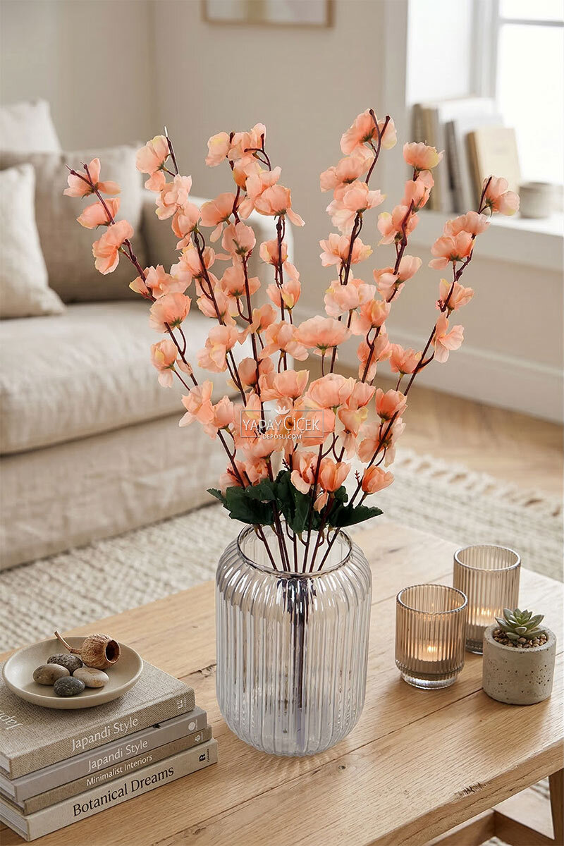 Yapay Büyük 7 Dallı Bahar Dalı Demeti 55 cm Somon