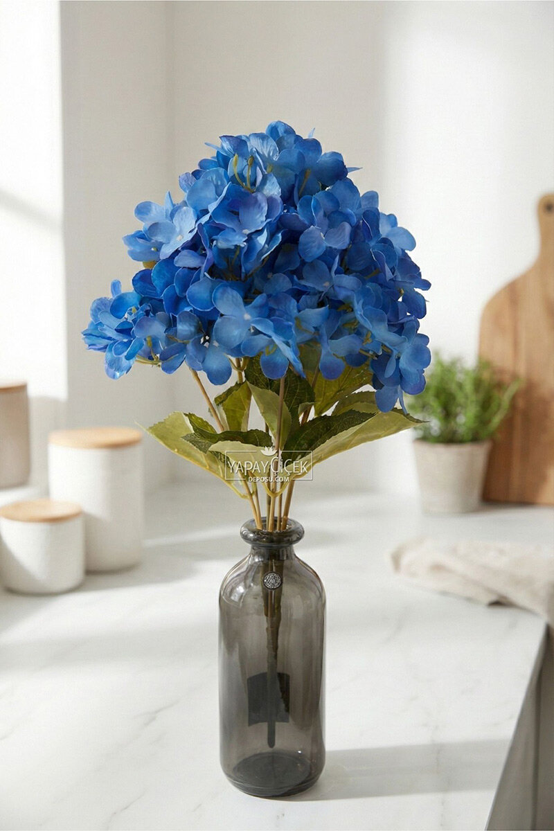 Yapay Çiçek Jumbo 7 Dal Ortanca Demeti, iri ve dolgun çiçek başlarıyla mekânlara güçlü ve şık bir görünüm kazandırır. Yedi dallı jumbo formu sayesinde tek başına vazoda dahi hacimli ve dikkat çekici bir dekoratif etki oluşturur.