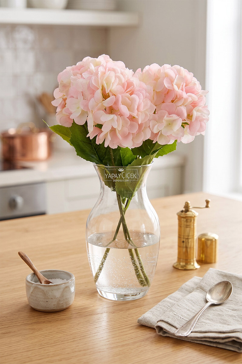 Yapay Çiçek Matin Ortanca Dalı 60 cm Pudra