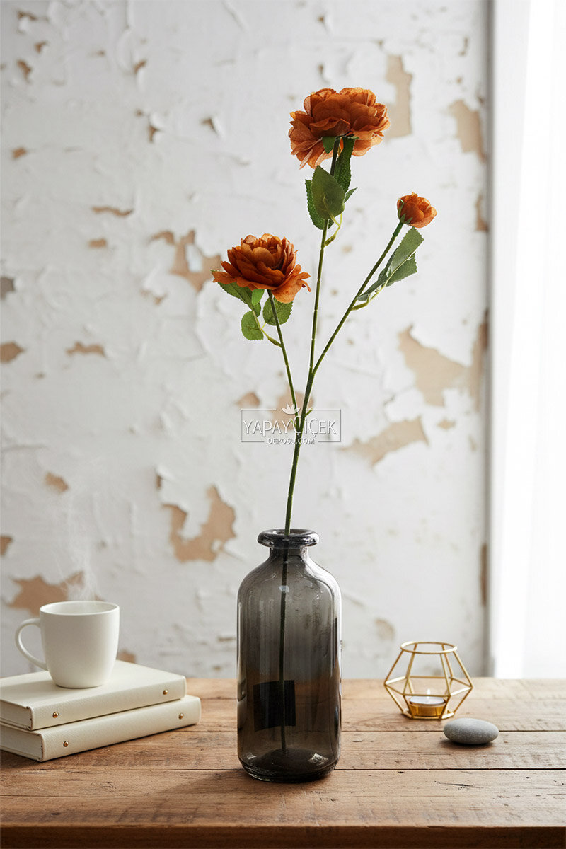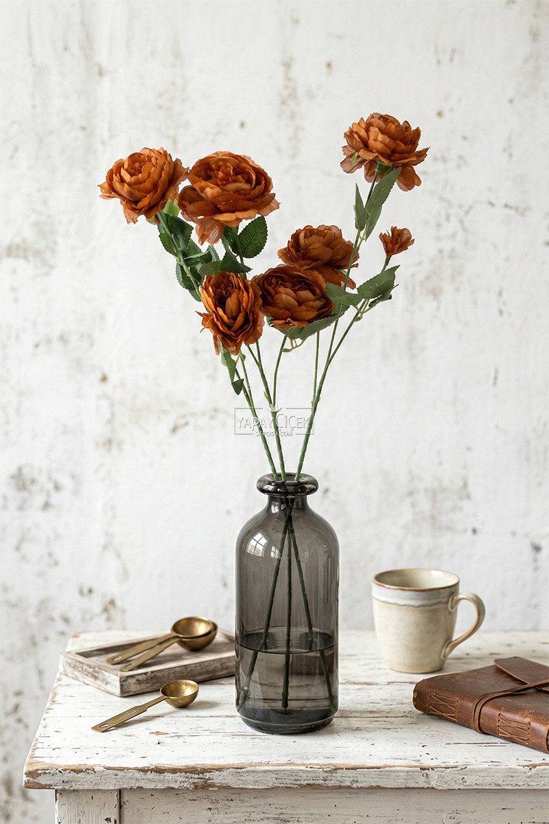 Yapay Çiçek Pastel 3 Adet Çöl Gülü 60 cm Kahverengi