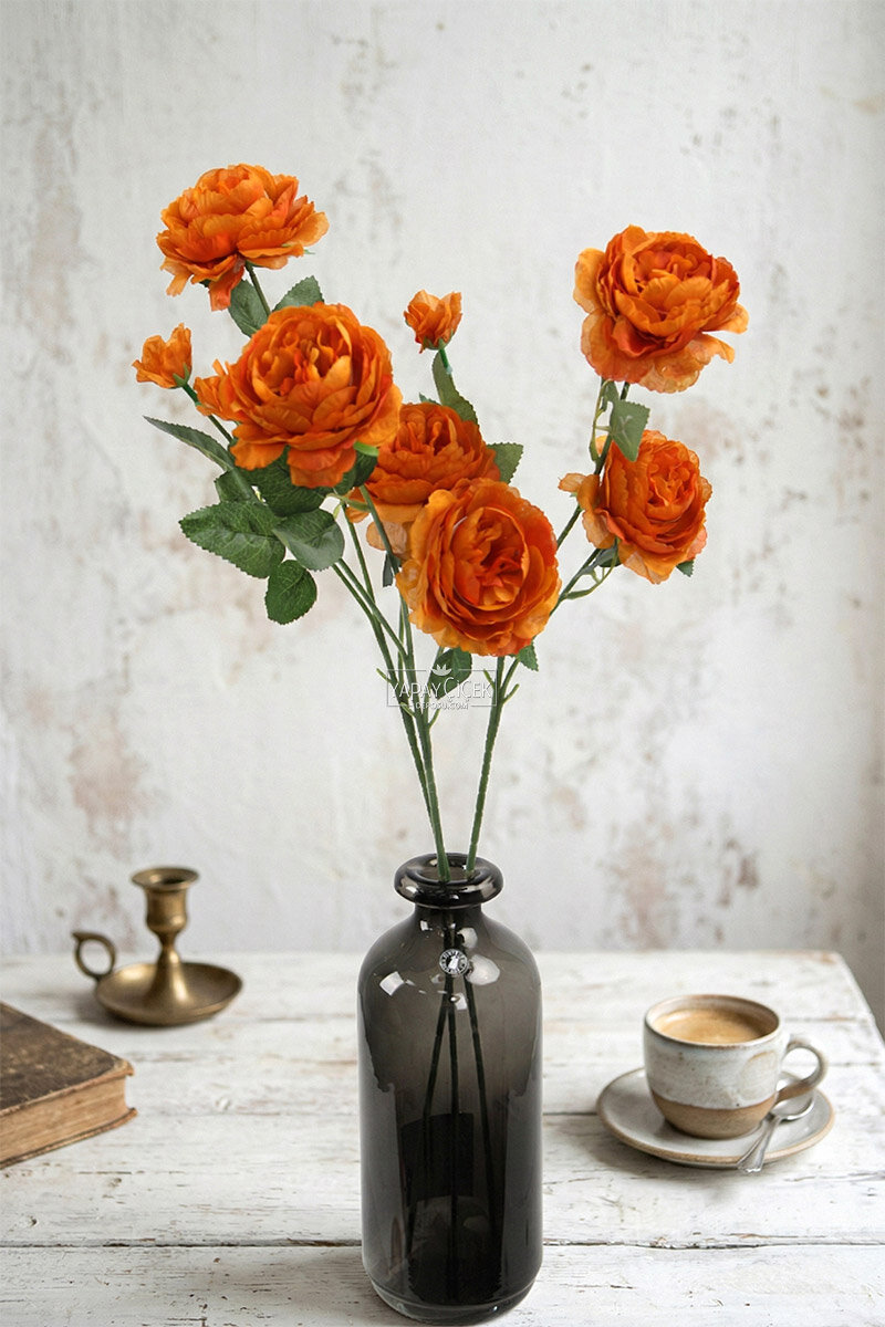Yapay Çiçek Pastel 3 Adet Çöl Gülü 60 cm Taba