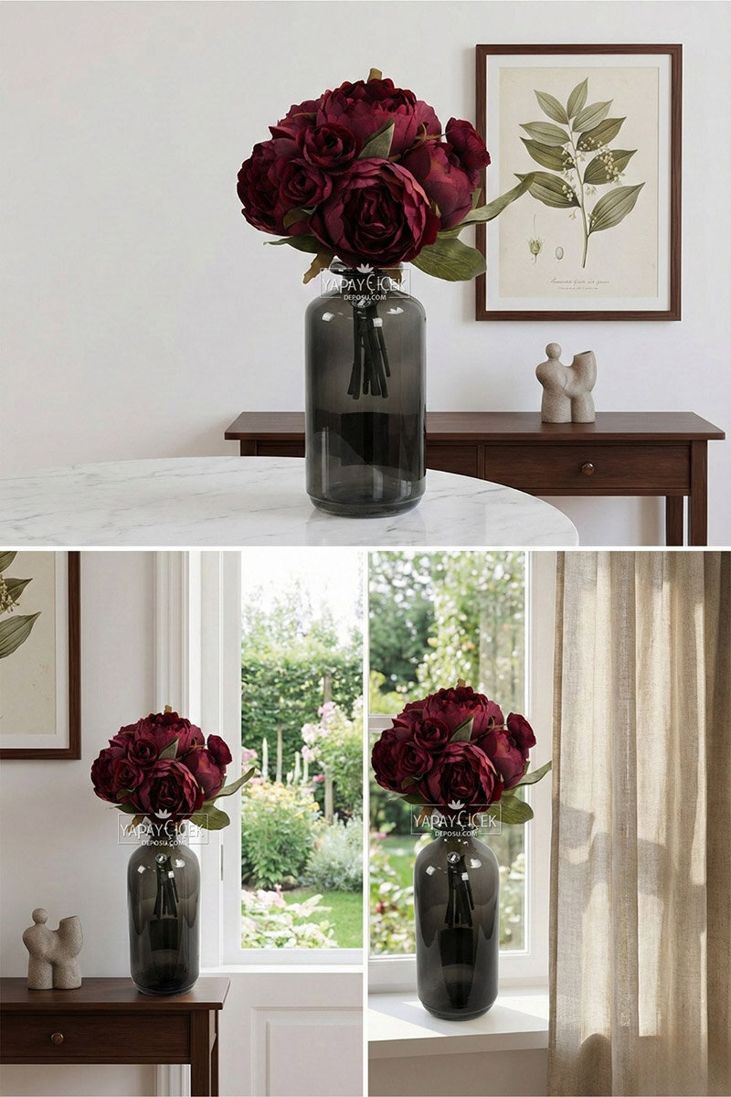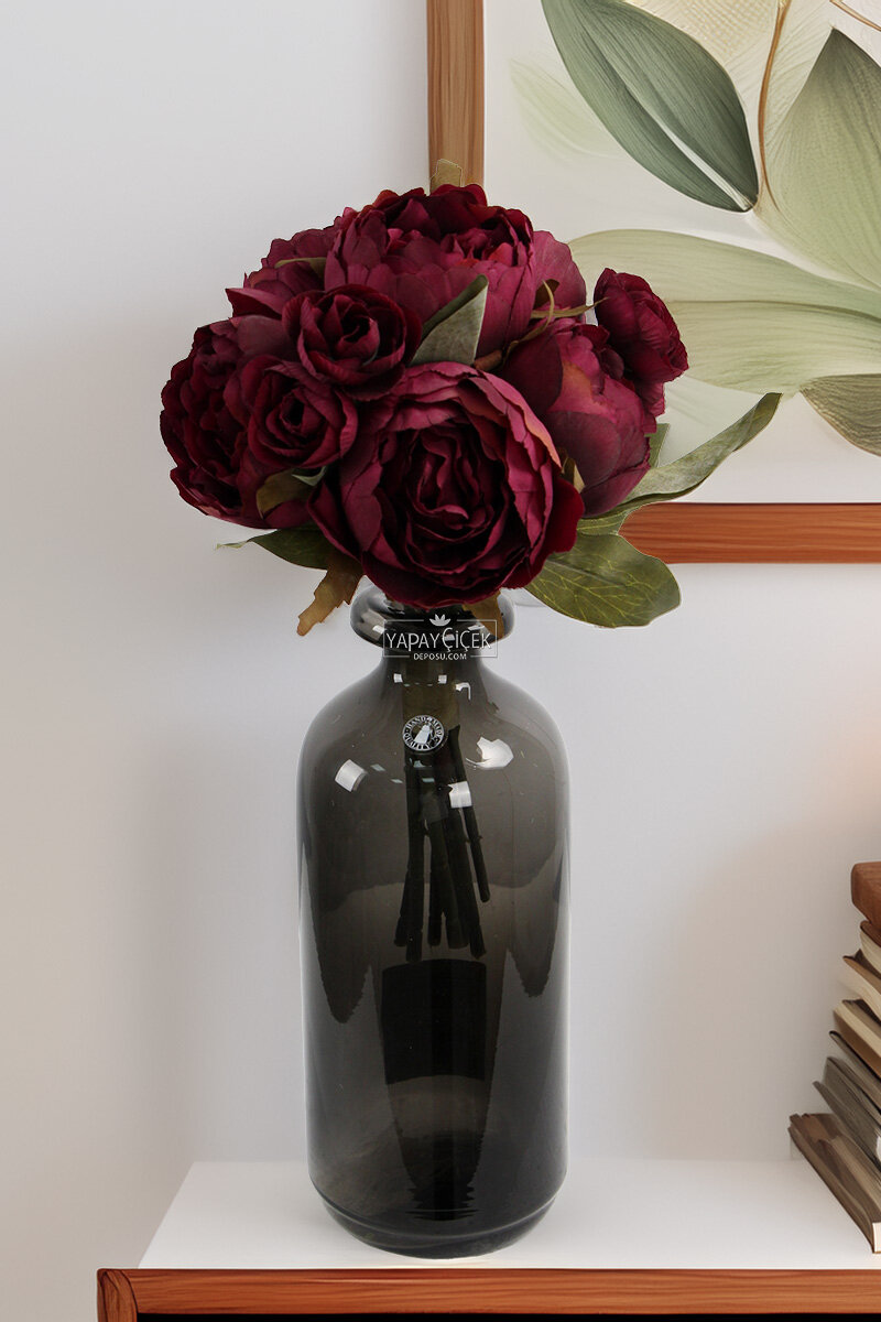 Yapay Çiçek 8'li Şakayık Gül Buketi Bordo