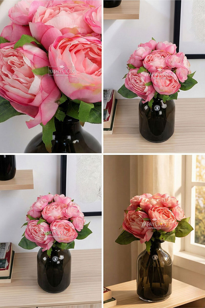 Yapay Çiçek Şakayık Gül Buketi, dolgun çiçek formu ve zarif görünümüyle dekorasyonlara romantik ve şık bir dokunuş katar. Dengeli yapısı sayesinde tek başına vazo içerisinde kullanılabileceği gibi farklı yapay çiçeklerle kombinlenerek estetik aranjmanlar oluşturulabilir. Bakım gerektirmeyen yapay yapısı ile solma yapmaz, uzun süre ilk günkü formunu korur. Ev, ofis, vitrin ve özel gün dekorasyonları için ideal bir tercihtir.