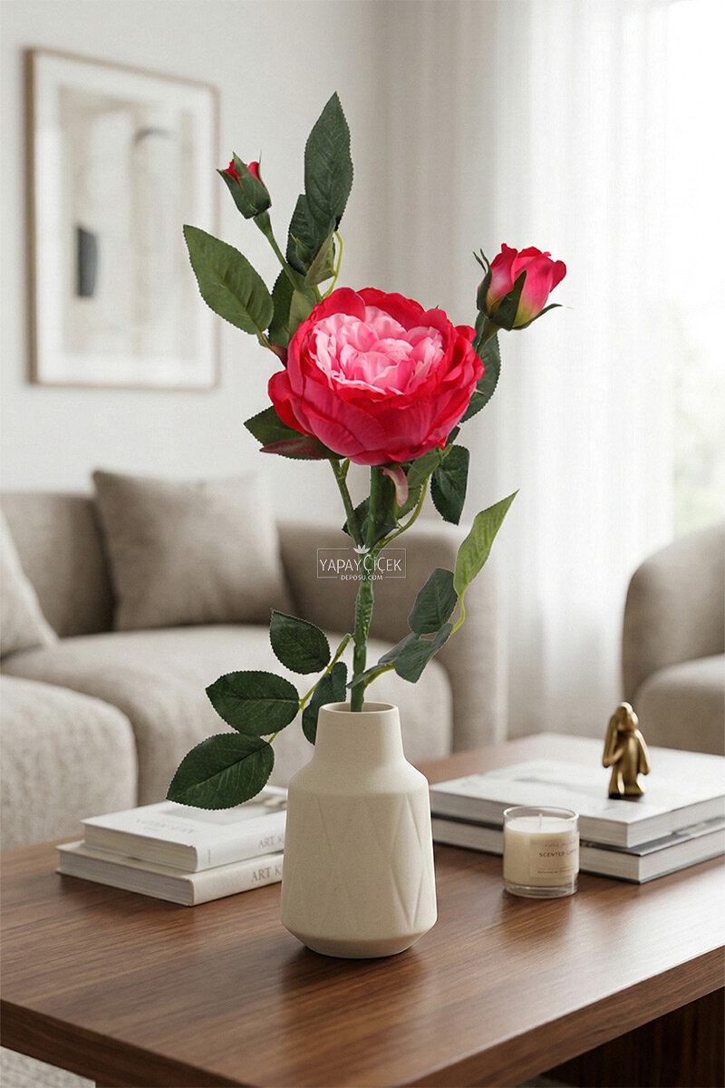 Yapay Çiçek Tomurlu Santa Gülü Dalı 75 cm Fuşya