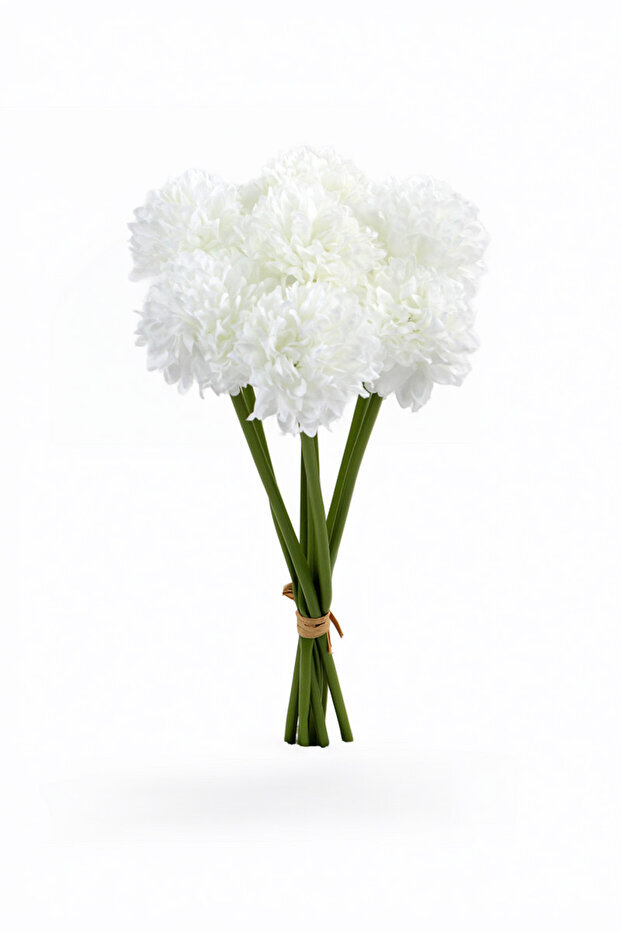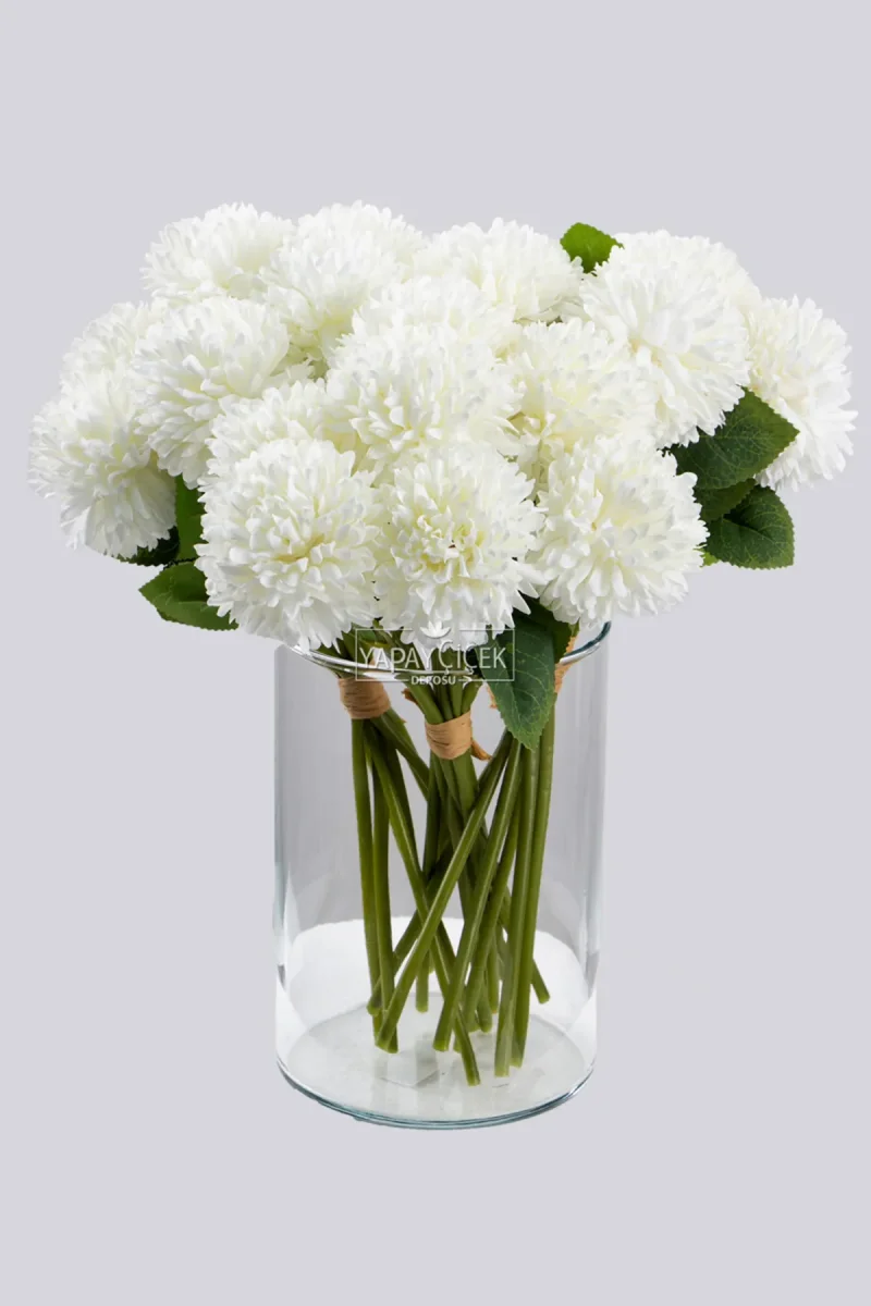 Yapay Çiçek Top Krizantem 7li Mini Kartopu Demeti 30 cm Kar Beyaz