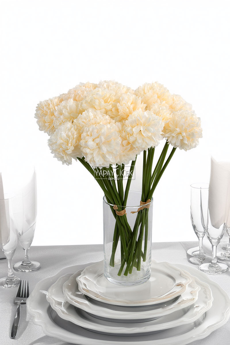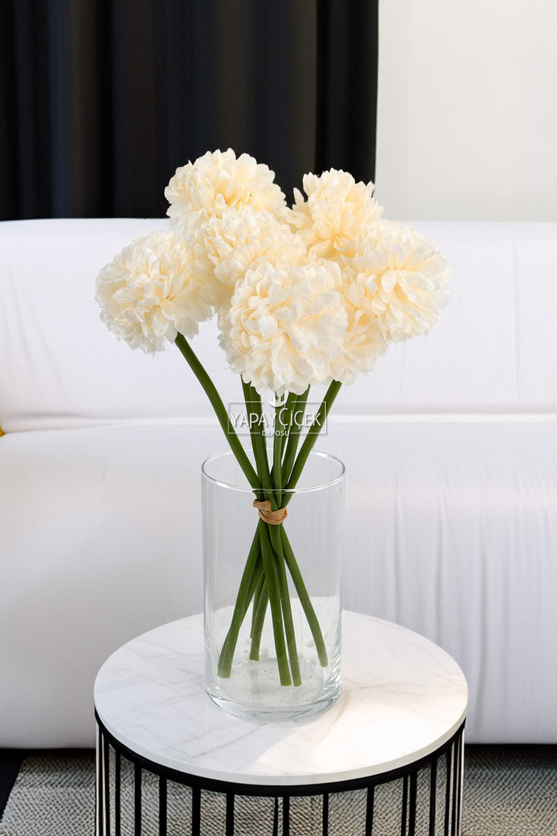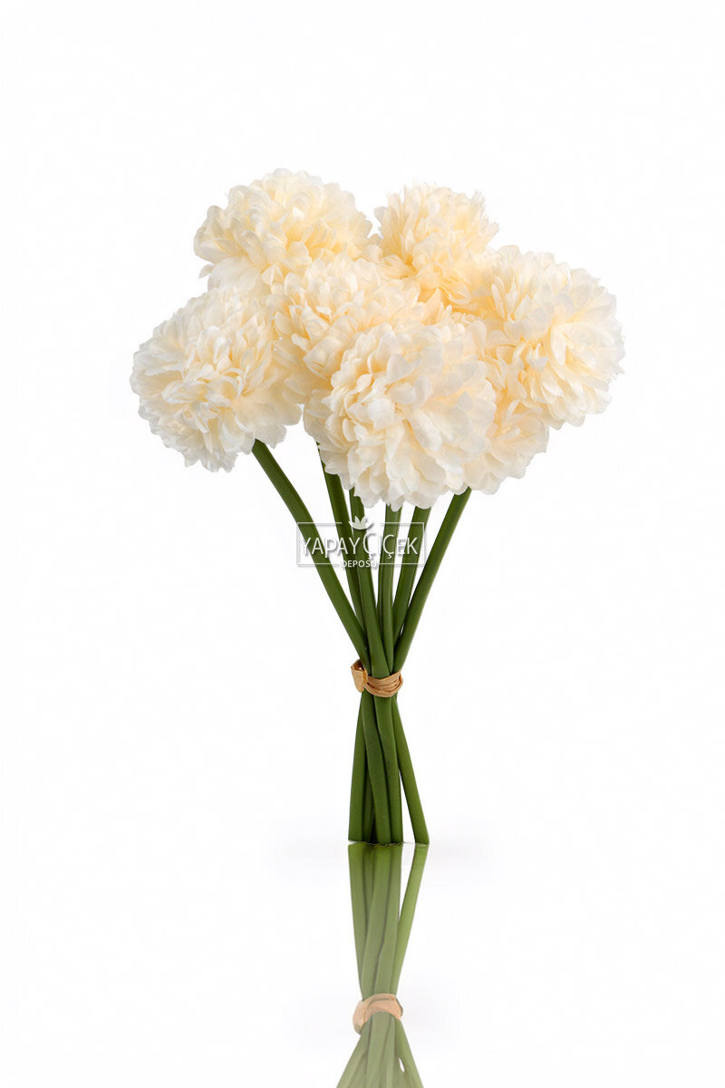 Yapay Çiçek Top Krizantem 7li Mini Kartopu Demeti 30 cm Krem