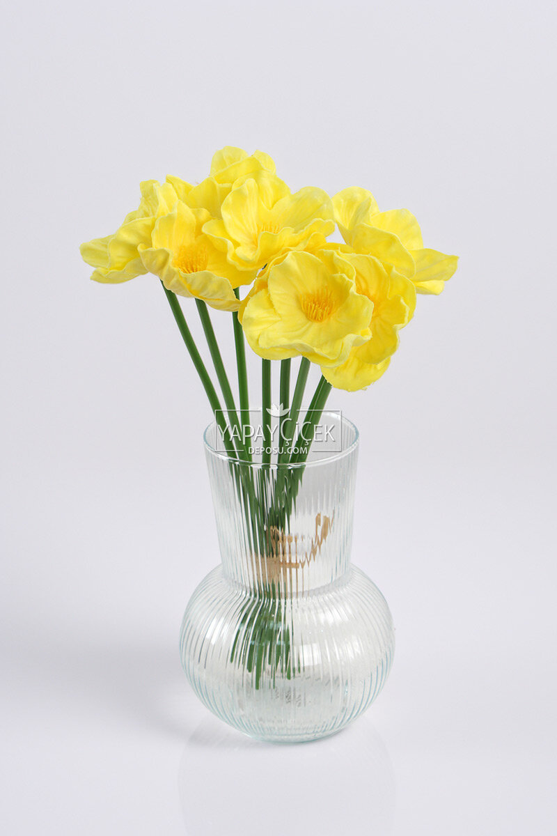 Yapay Çiçek 8’li Islak Dağ Gelinciği Demeti 33 cm Sarı