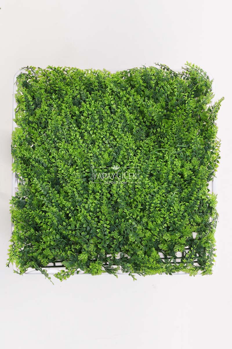 Kare panel formu; ev, ofis, kafe, restoran, mağaza, vitrin ve stüdyo dekorasyonlarında duvar kaplama, fon veya vurgu alanı olarak rahatlıkla kullanılabilir. Birden fazla panel birleştirilerek daha geniş yüzeylerde bütüncül ve estetik bir bitki duvarı oluşturulabilir.