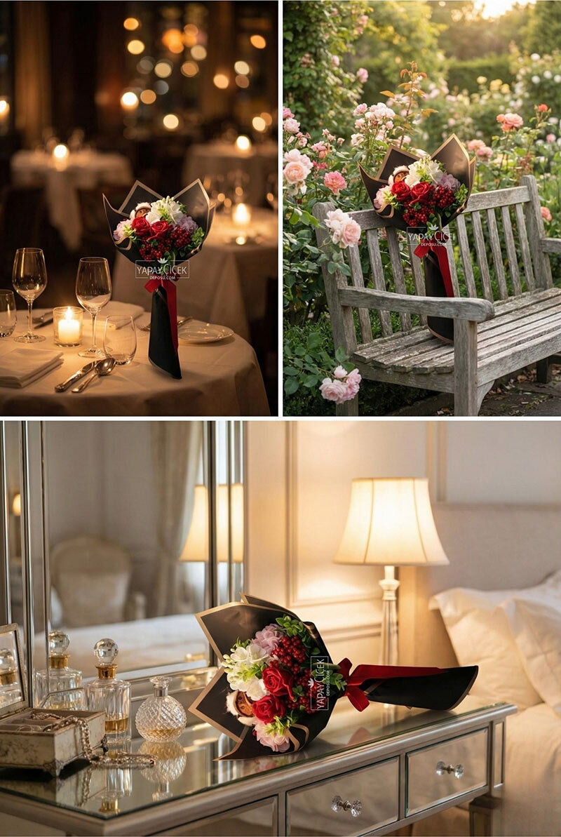 Kalıcı ve şık bir hediye alternatifi sunan Yapay Elysia In Bloom Buket – Özel Gün Buketi, özel anlara estetik ve anlamlı bir dokunuş katar.
