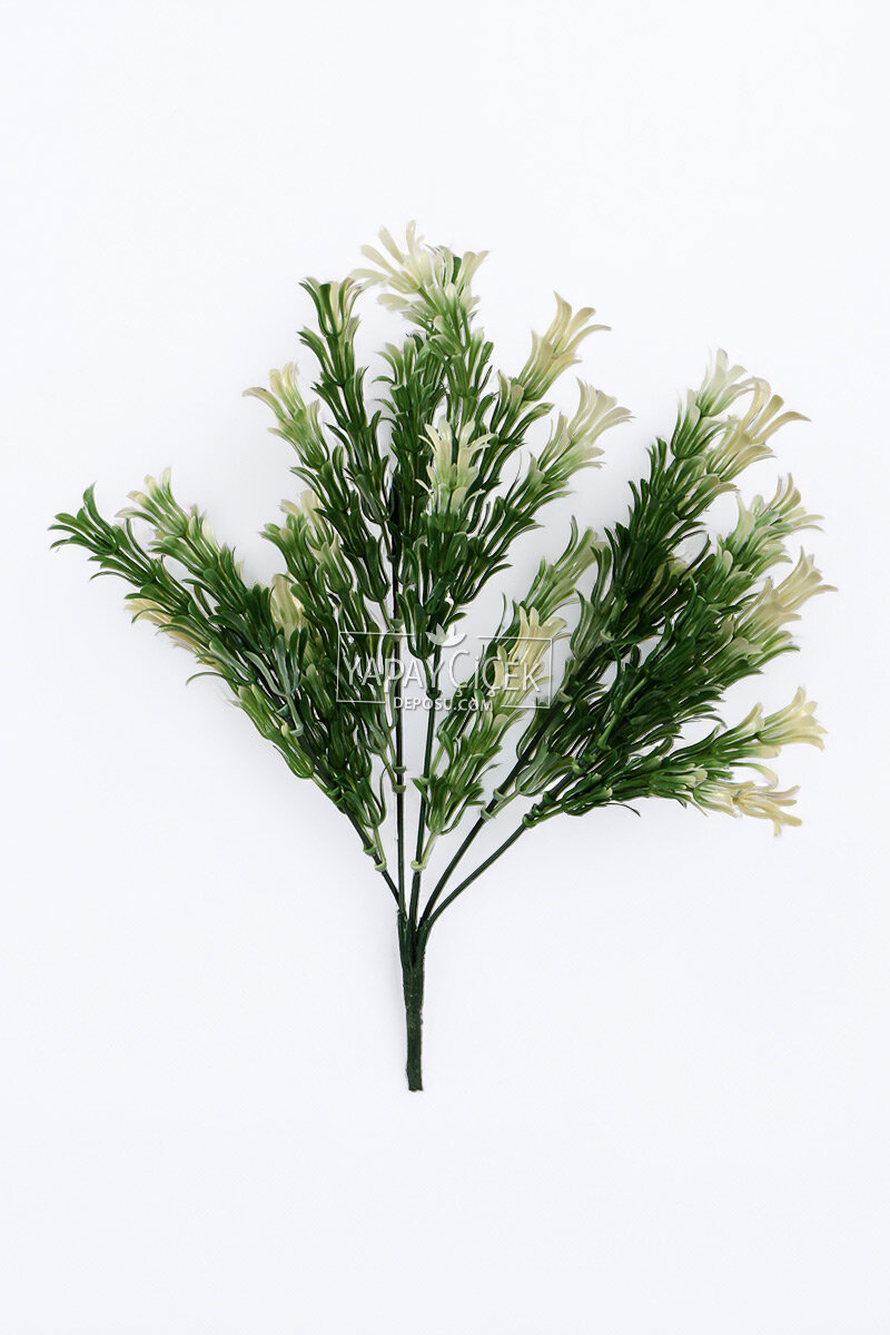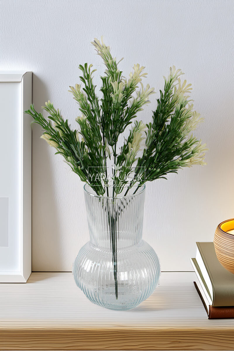 Yapay Funda Çiçeği Demeti 36 cm, yeşil ve krem tonlarının doğal uyumunu bir araya getirerek dekorasyonlara zarif ve sakin bir hava katan özel bir aranjmandır. İnce dalları ve detaylı çiçek yapısı sayesinde gerçek funda görünümünü başarılı bir şekilde yansıtır.