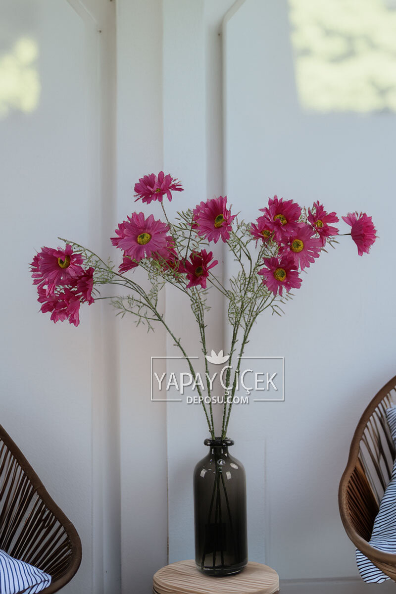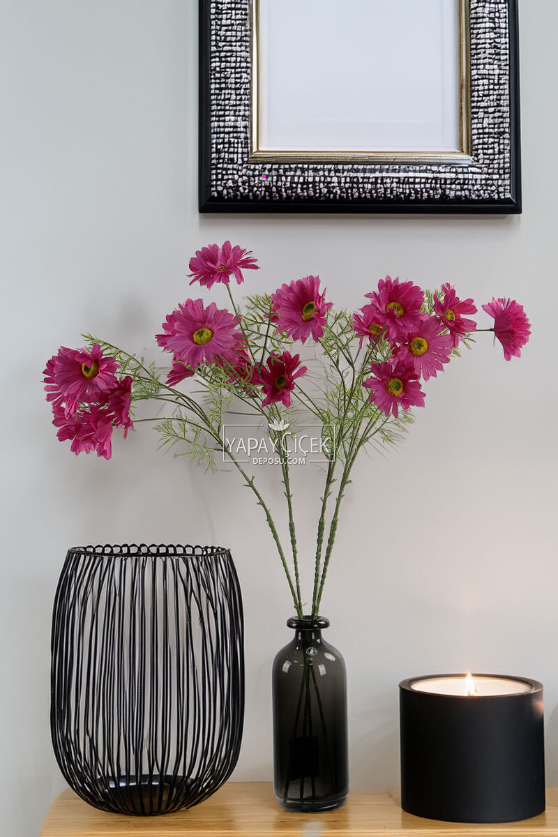 Yapay Çiçek 5 Çiçekli iskandinav Papatya Dalı 80 cm Fuşya